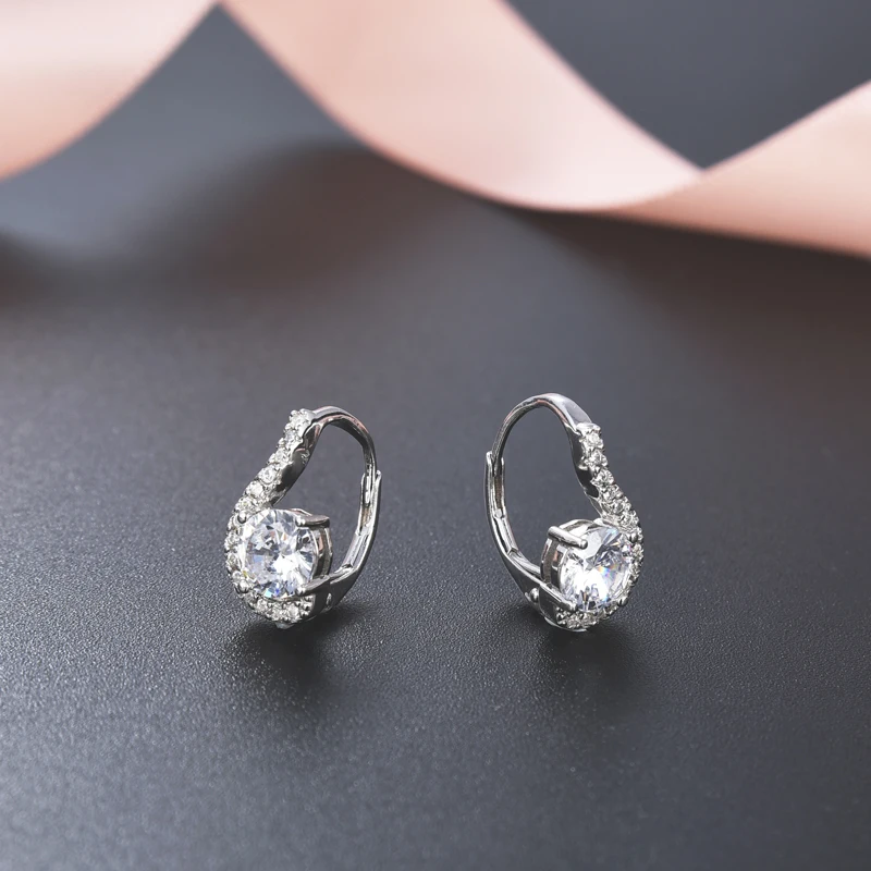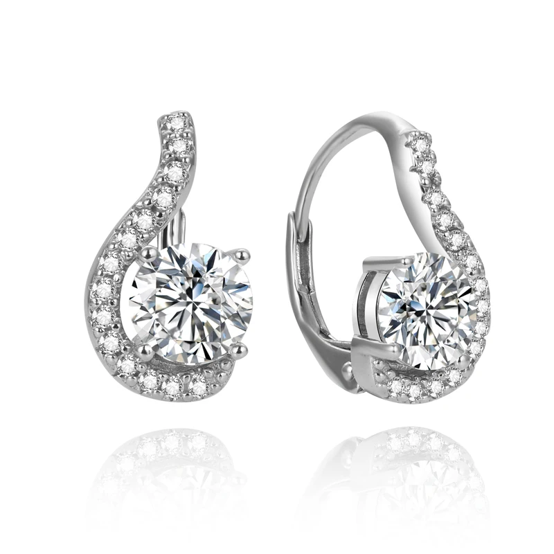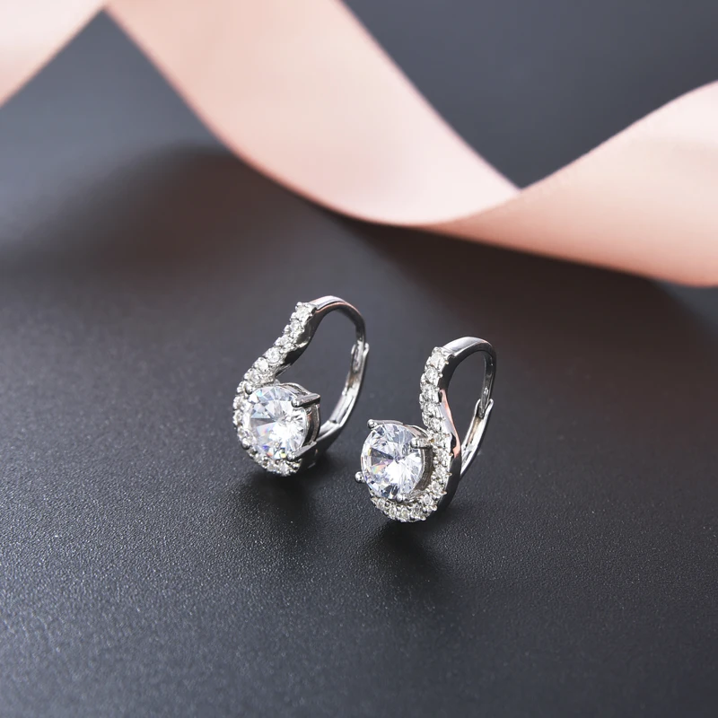 China Jewelry Factory Wholesale France Lock Rhodium Plating Diamond 925 Silver Earring
