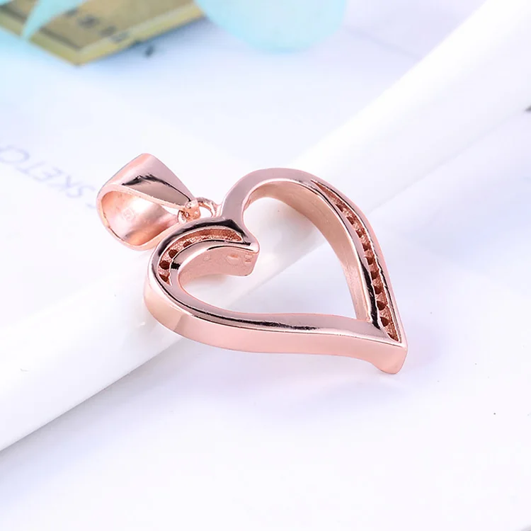 Trendy Women 3A Cubic Zirconia Pendants Rose Gold Plated Love Heart 925 Sterling Silver Pendant Blanks