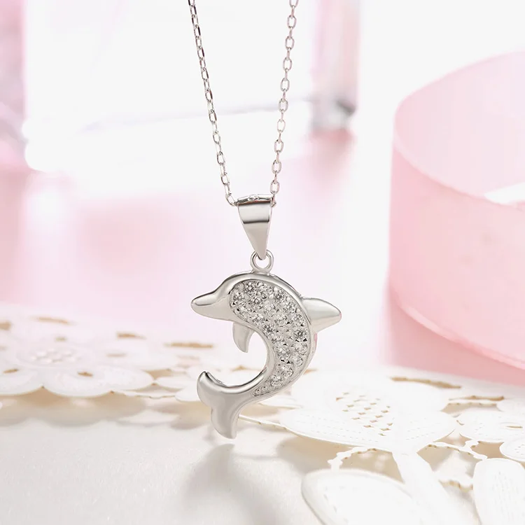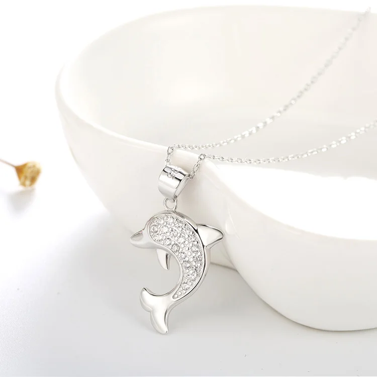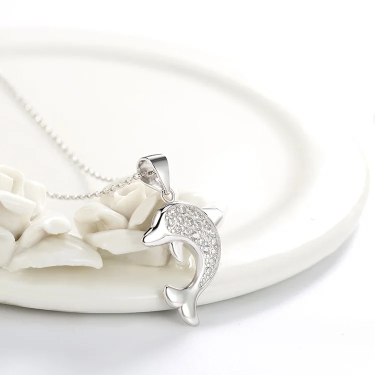 POLIVA Beautiful Jewelry 3A Cubic Zirconia Pendants Rhodium Plated Cute Dolphin 925 Silver Pendant Wholesale