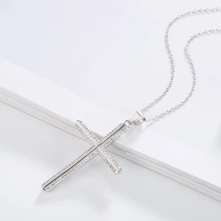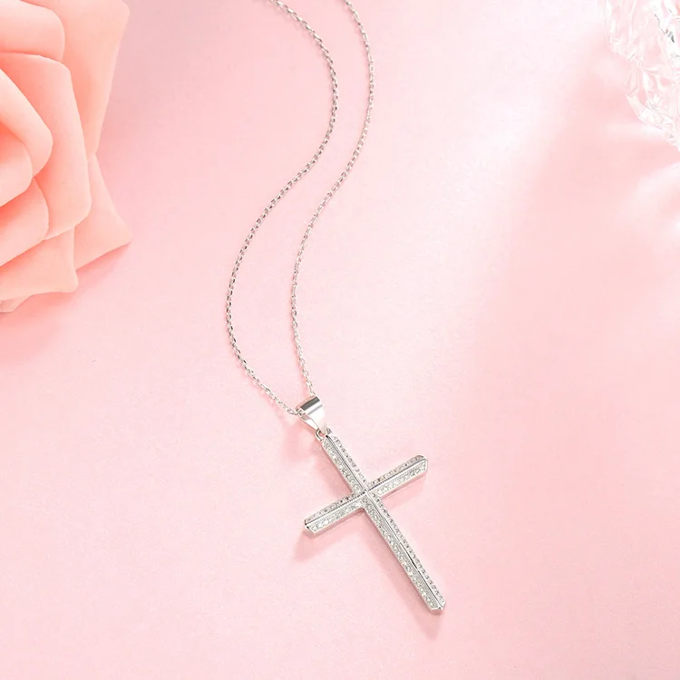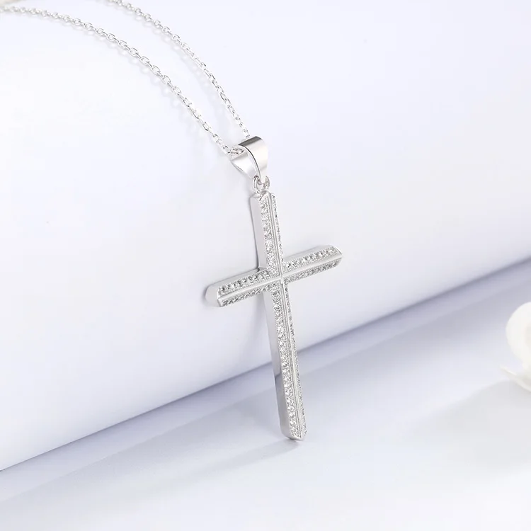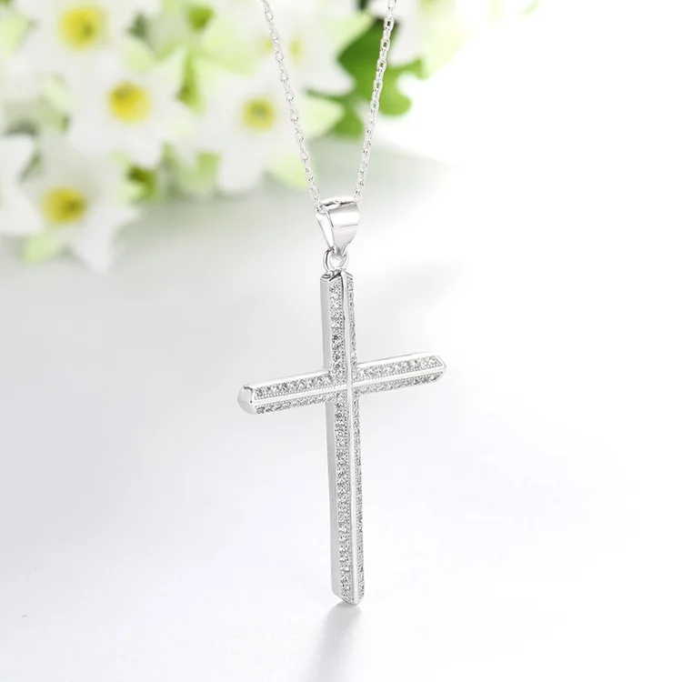 Elegant Women Jewelry 925 Sterling Silver Pendants 3A Cubic Zirconia CZ Cross Pendant Chain Necklace