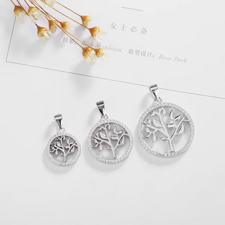 Christmas Gift 925 Sterling Silver Gold & Rhodium Plated 3A Cubic Zirconia Fashion Life of Tree Pendant Women's Jewelry