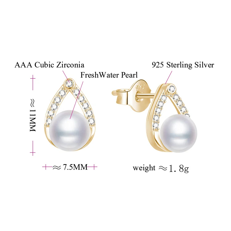 POLIVA Wholesale OEM ODM Custom logo Pearl Earrings Sterling Silver S925 Earrings Fresh Water Pearl Earrings for Women