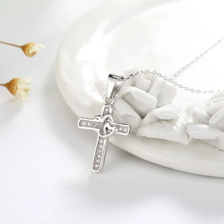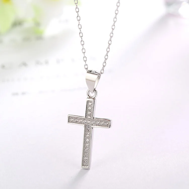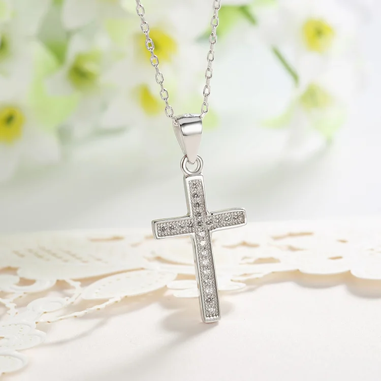POLIVA Fashion Jewelry 925 Sterling Silver Pendants 3A Cubic Zirconia Rhodium Plated Micro Pave Cross CZ Pendant