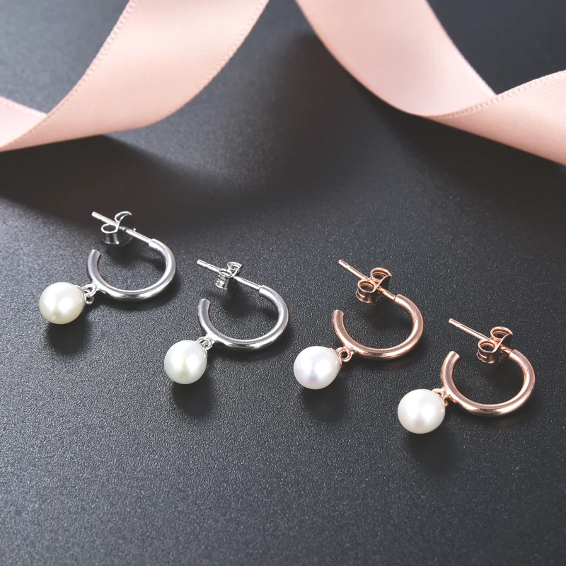 925 Sterling Silver Freshwater Pearl Drop Jewelry Earrings Stud