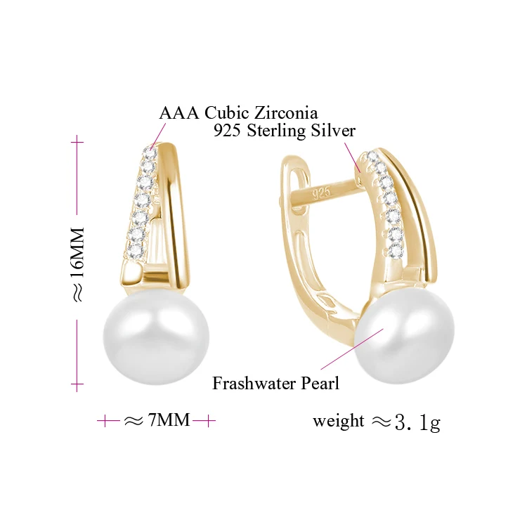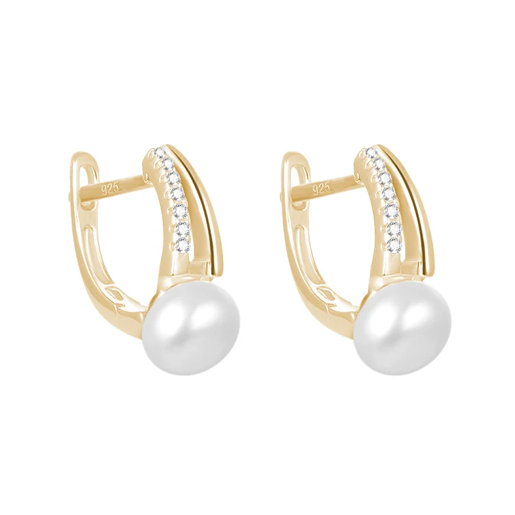 POLIVA 925 Sterling Silver Gold Plated Freshwater Pearl Earrings Wholesale Jewelry