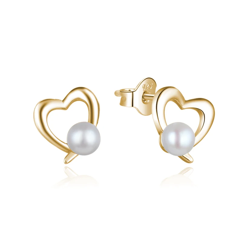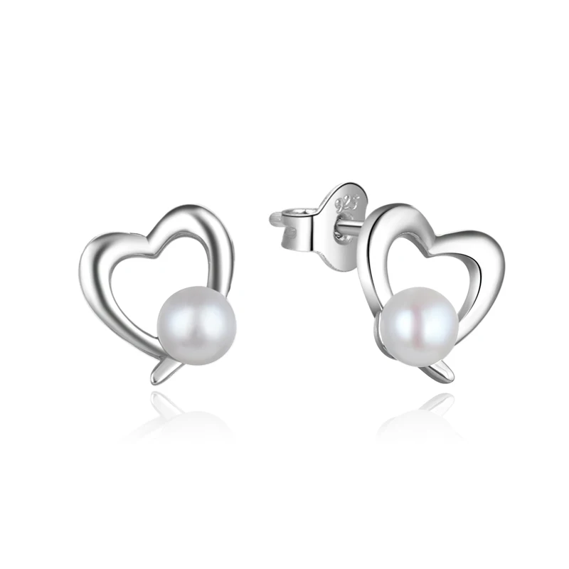 925 Rhodium Plated Sterling Silver Freshwater Cultured Stud Heart Shape Pearl Stud Earrings