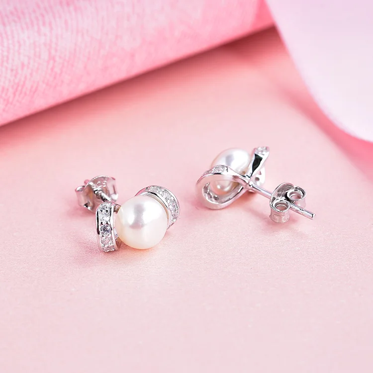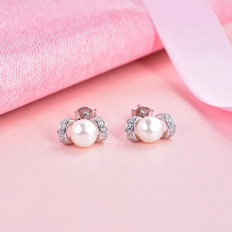 Minimalist Korean Pearl Flower Stud Earrings 925 Sterling Silver Jewellery Earring