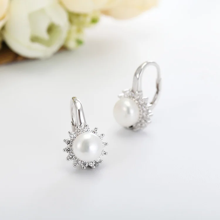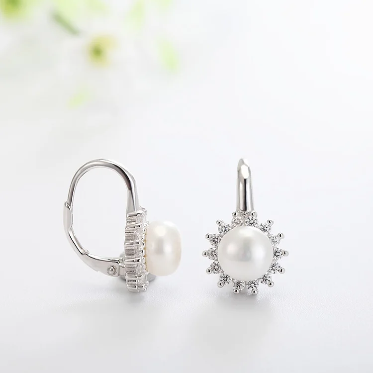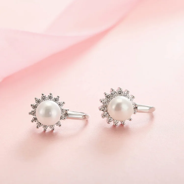 POLIVA Freshwater Pearl Jewelry Zircon Earring 925 Sterling Silver Earrings Women's BOHEMIA Clip-on Earrings Rhodium Plated 4.6g