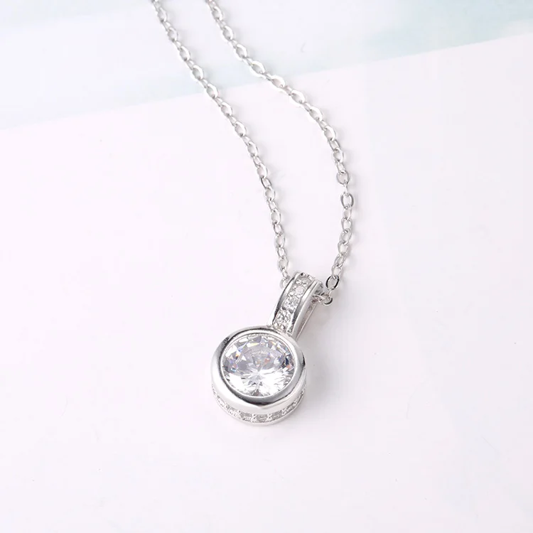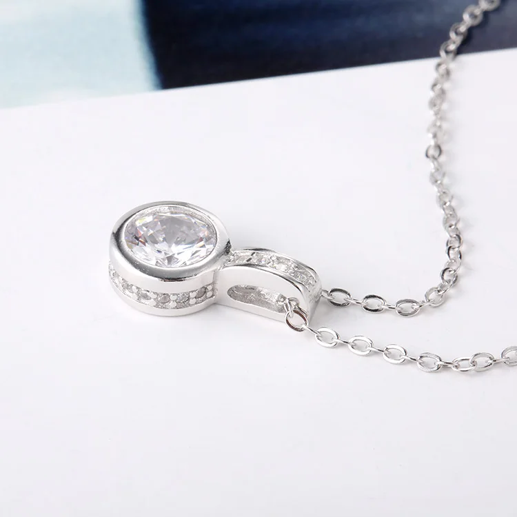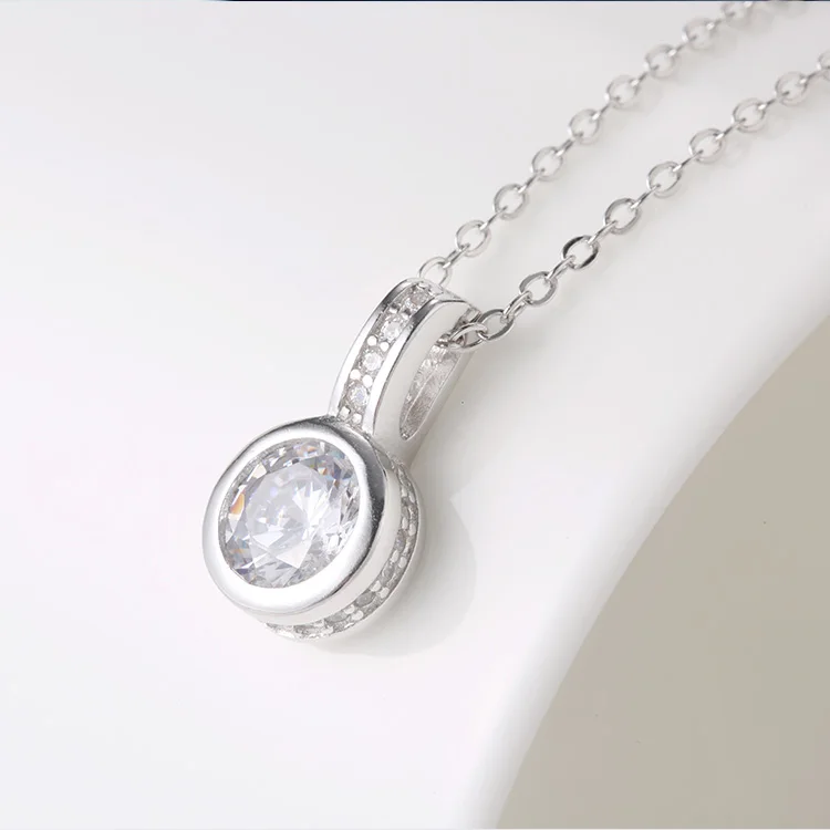 POLIVA 3A Cubic Zirconia 925 Sterling Silver Pendants Rhodium Plated Diamond Bezel Setting Simple Fashion Pendant