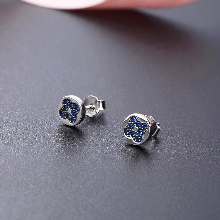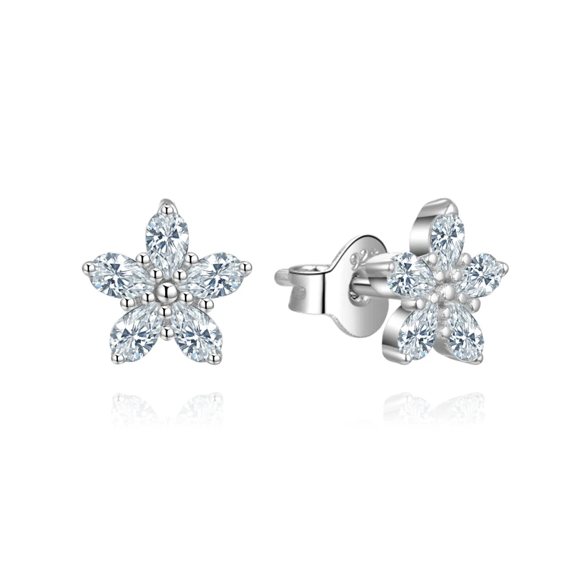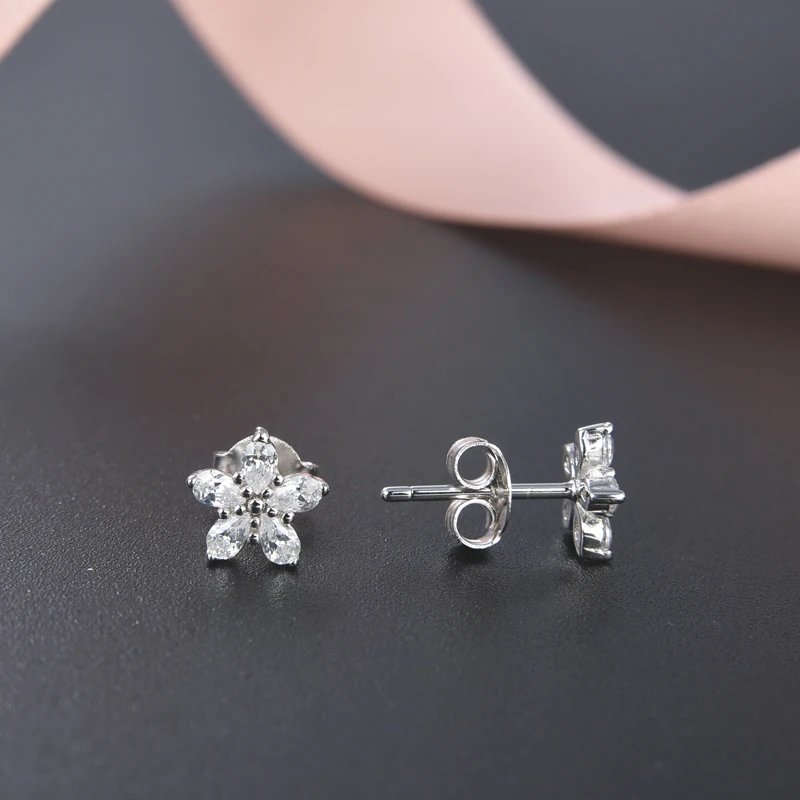 925 Sterling Silver Small Tiny CZ Jewelry Crown Flower Earrings