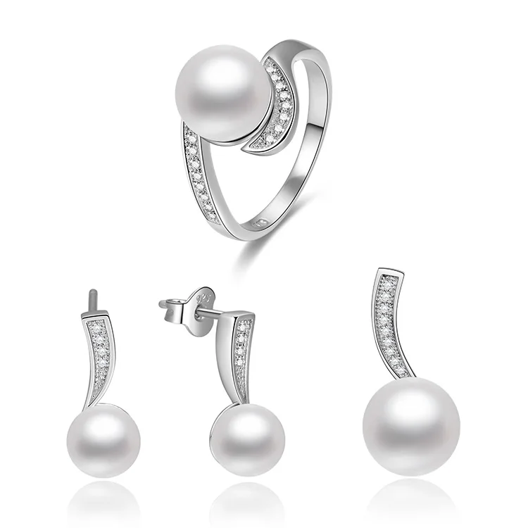 925 Sterling Silver Fantasy Miss AAA Freshwater Pear Bride Jewelry Set Wedding Earrings