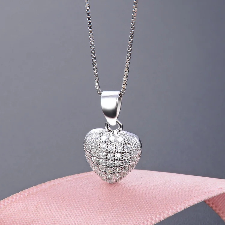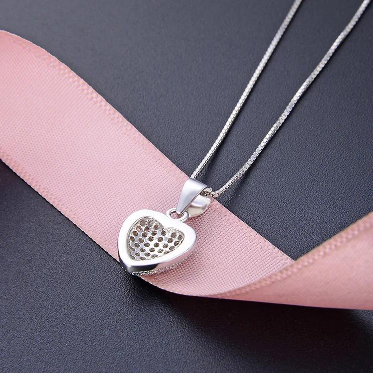Classic Simple 925 Sterling Silver Jewelry Pendants White Zircon Heart Shape Pendant for Women