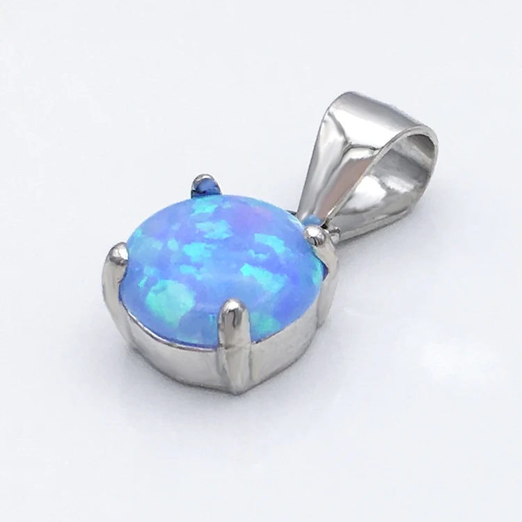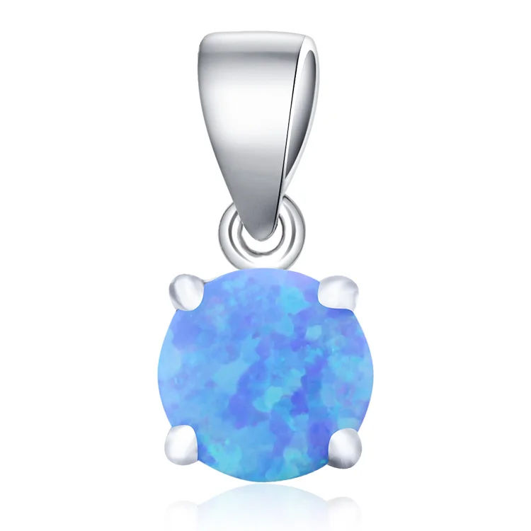 POLIVA Simple Style 925 Sterling Silver Jewelry Pendants Fashion Gemstone Blue Opal Pendant for Gift