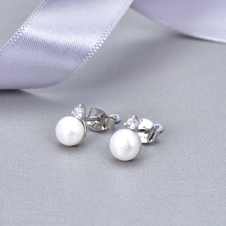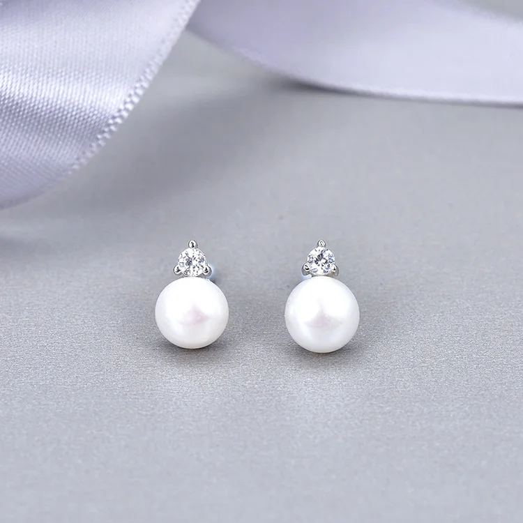 Handmade Fashion Jewellery 925 Sterling Silver Rhodium Plating Earring Aaa Cubic Zirconia Freshwater Pearl Earing
