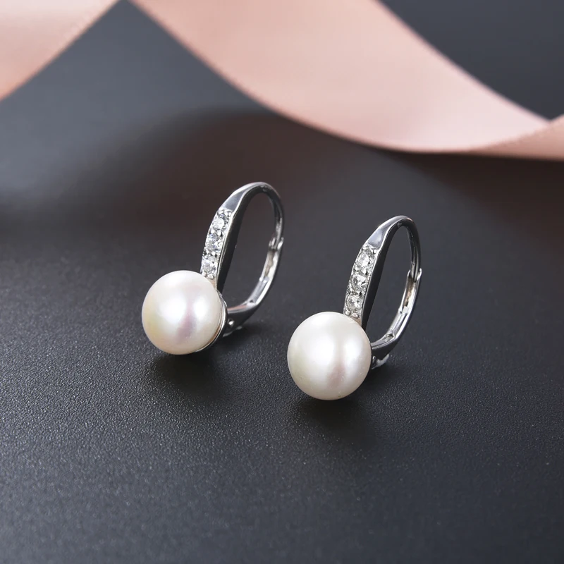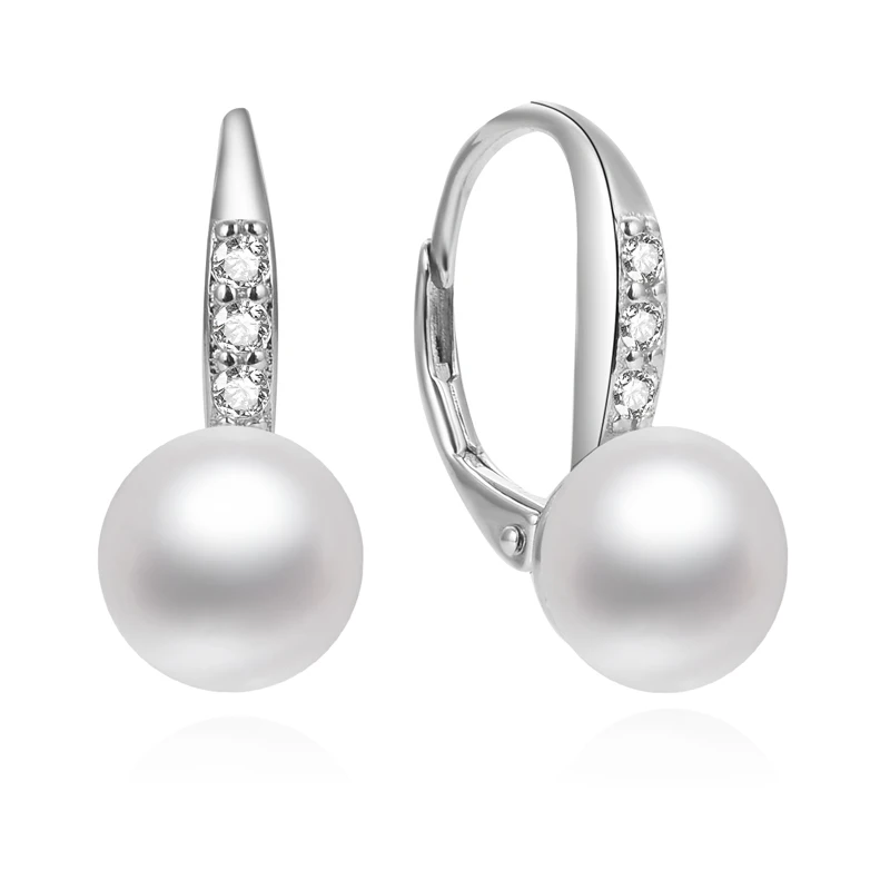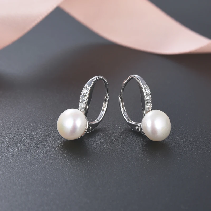 925 Sterling Silver Pearl Dangle Earrings Genuine Freshwater Cultured Drop Pearl Lever-back Earrings