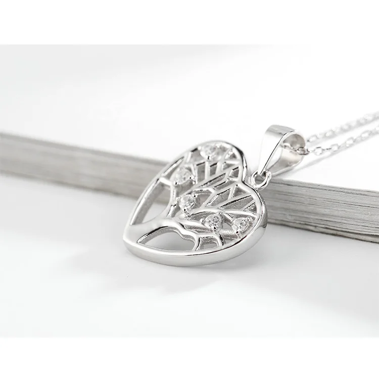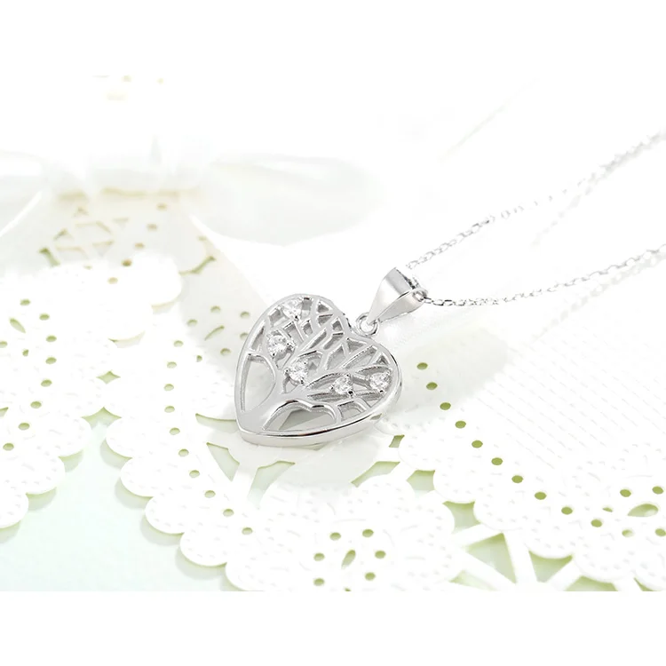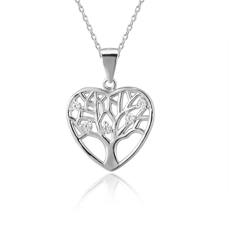 Latest Fashion 925 Sterling Silver Heart Shape Pendant for Women Rhodium & Gold Plated Featuring Life Tree AAA Cubic Zirconia