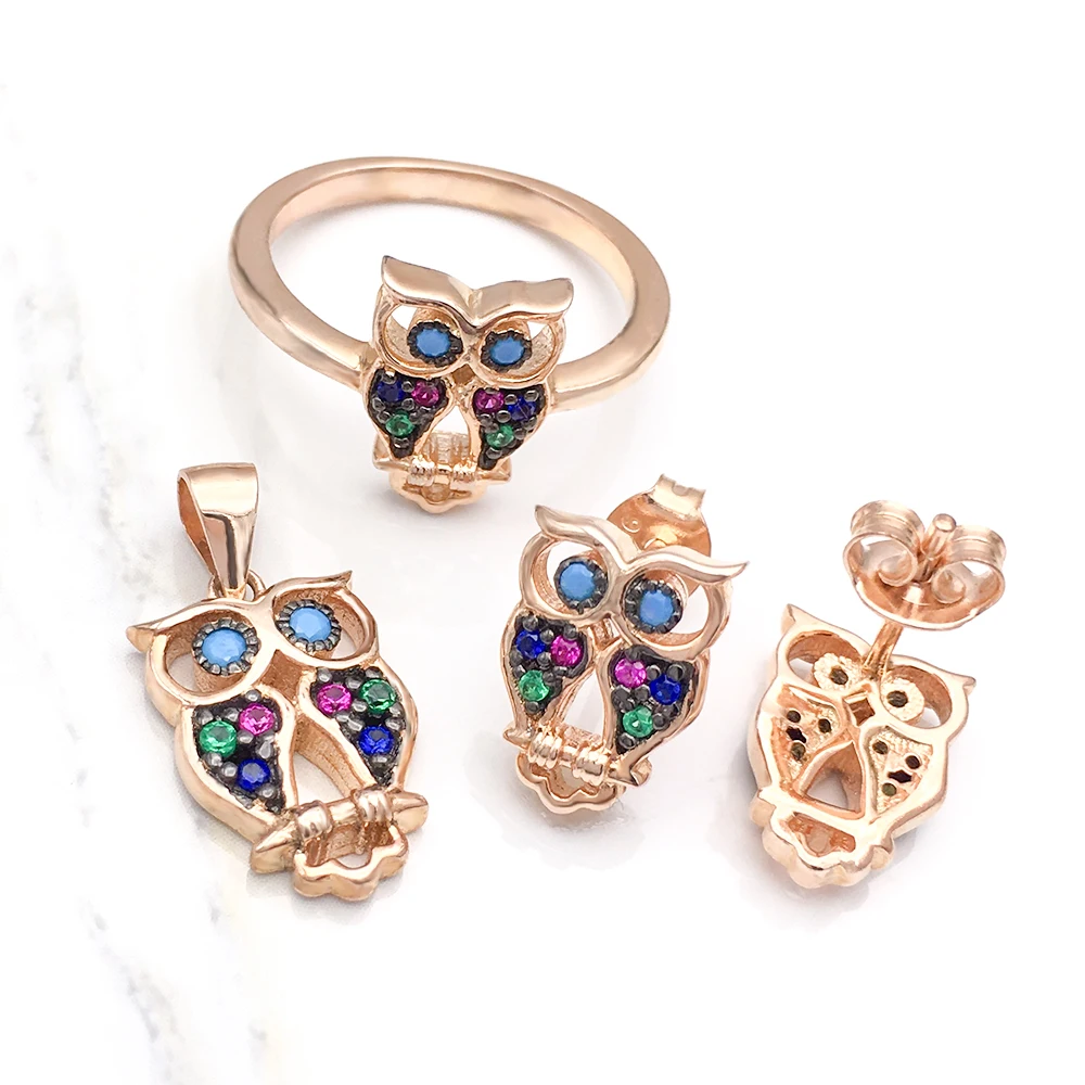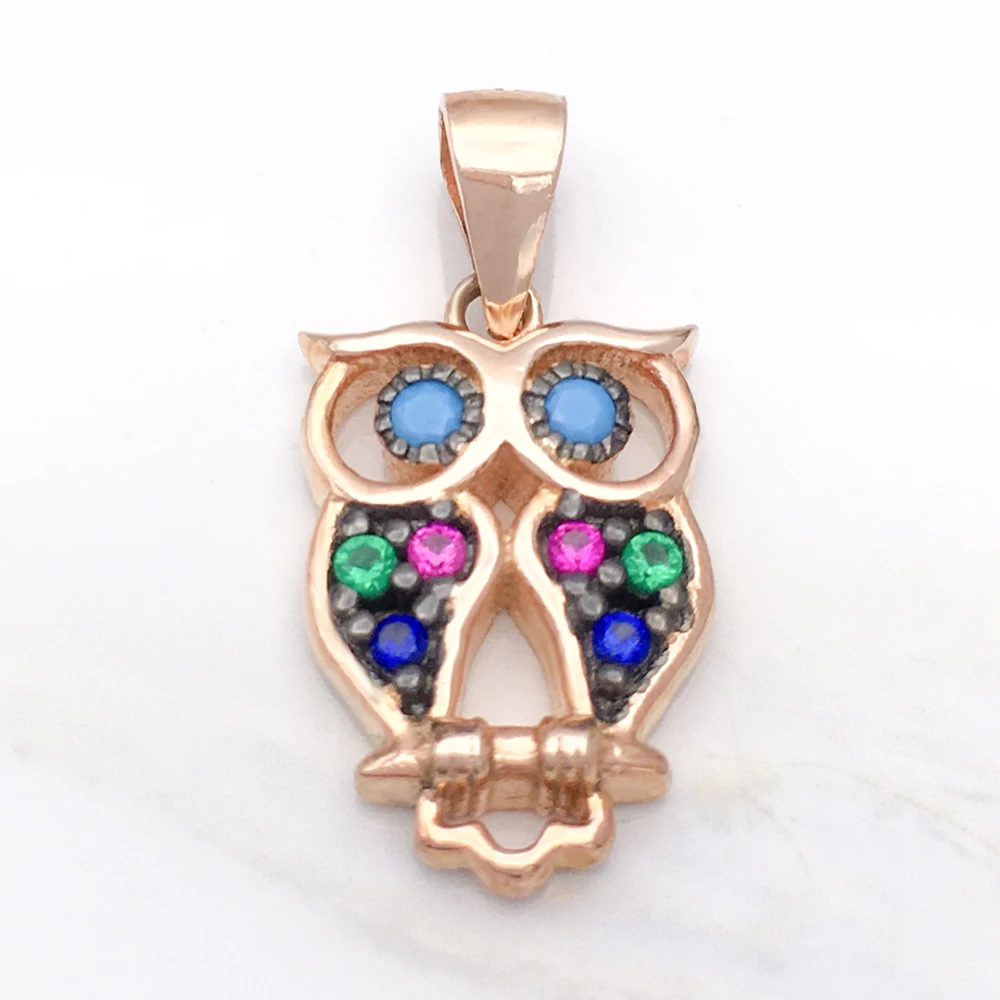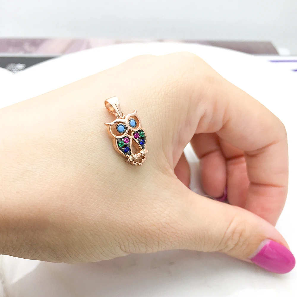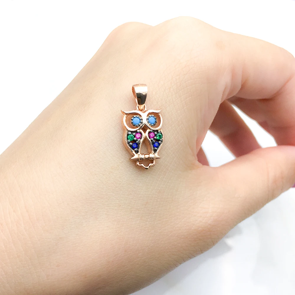 Newest Popular 925 Sterling Silver Pendants 3A Cubic Zirconia Rose Gold Plated Owl Druzy Pendant