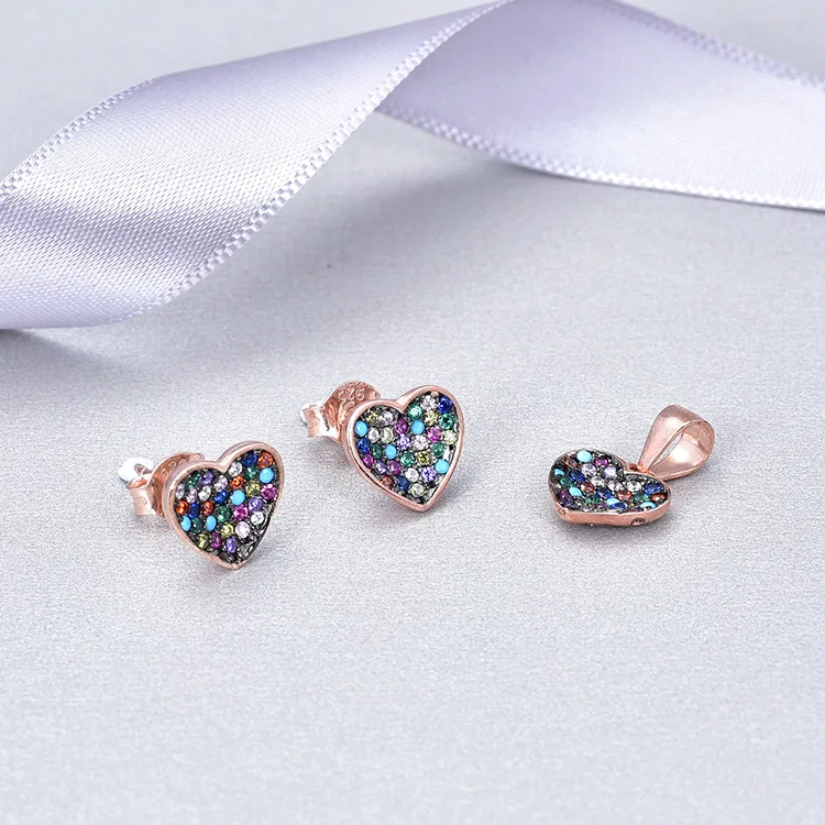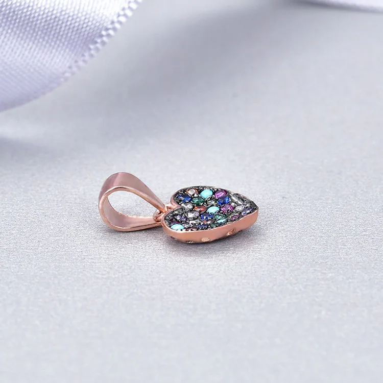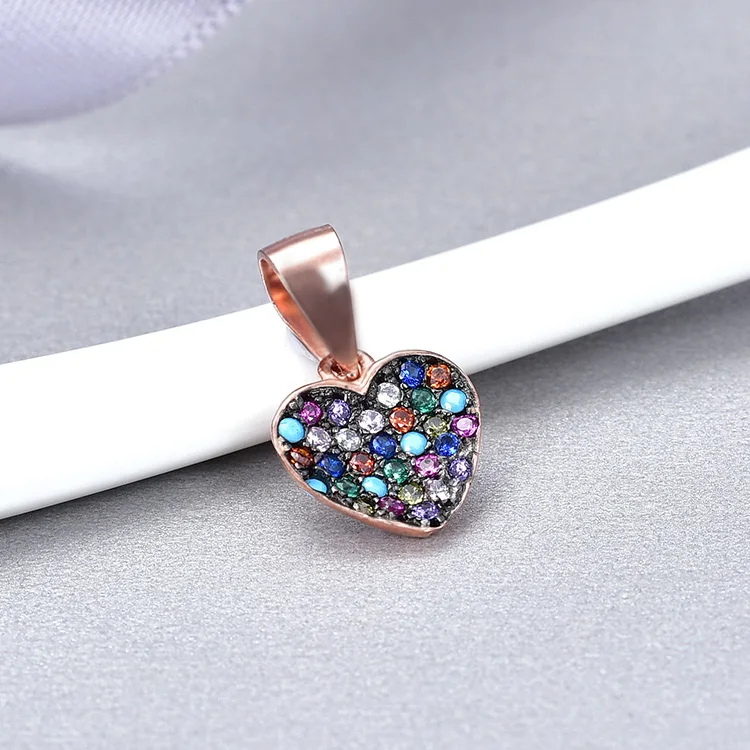 Sweet 925 Sterling Silver Love Heart Pendant 3A Cubic Zirconia with Multicolor Pave Setting Rose Gold & Rhodium Plated Gift