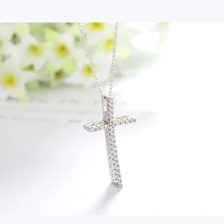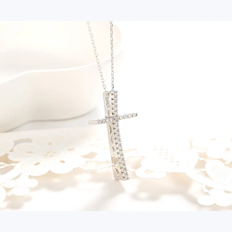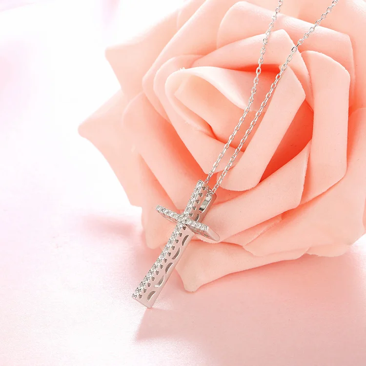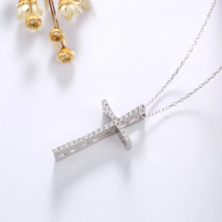 Creative Design Jewelry 925 Sterling Silver Gold Plated 3A Cubic Zirconia Cross Charm Pendant Chain Necklace