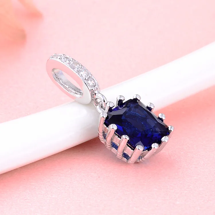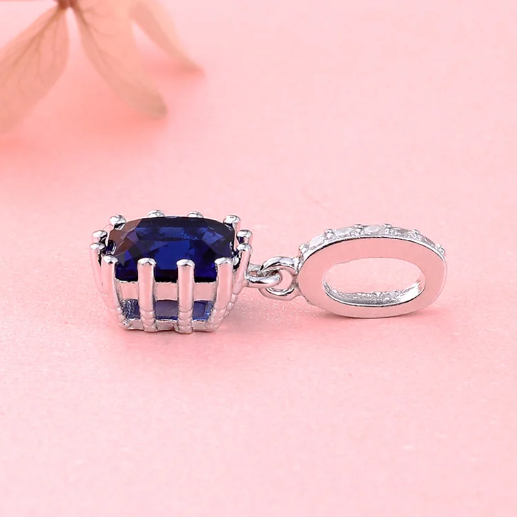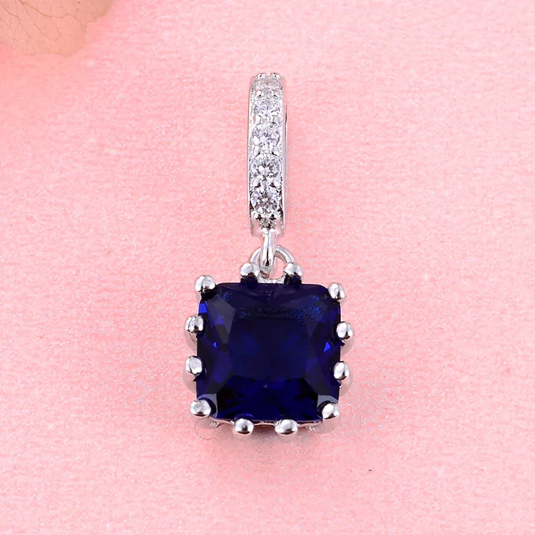 925 Sterling Silver Square Shape Blue Sapphire Pendant Rhodium and Gold Plated Wedding Jewelry Charm Pendants