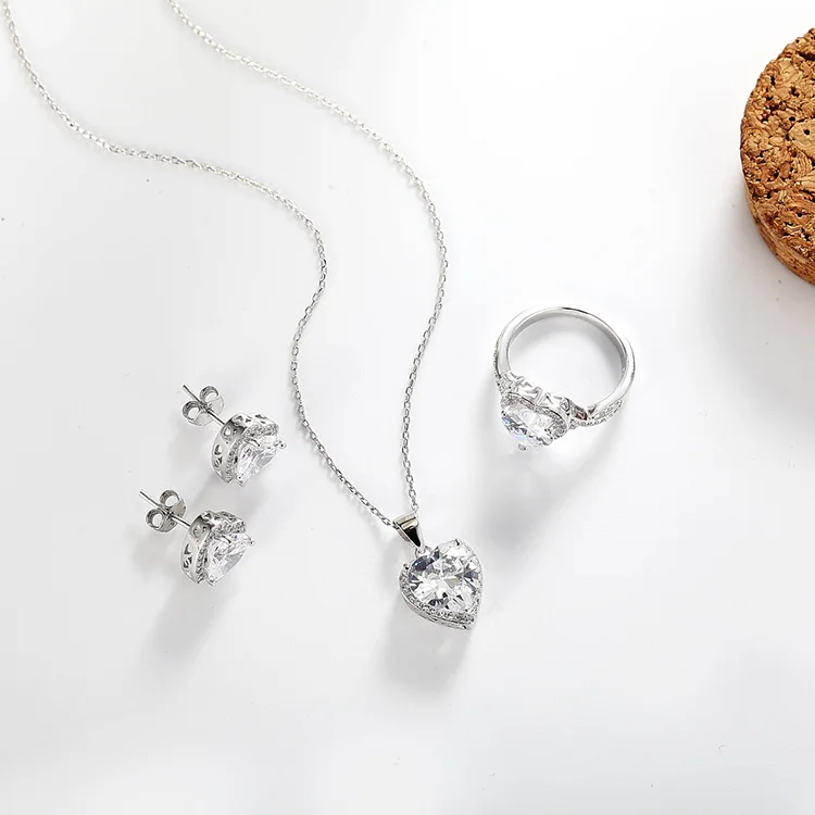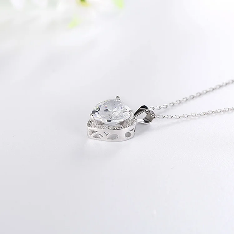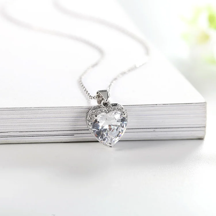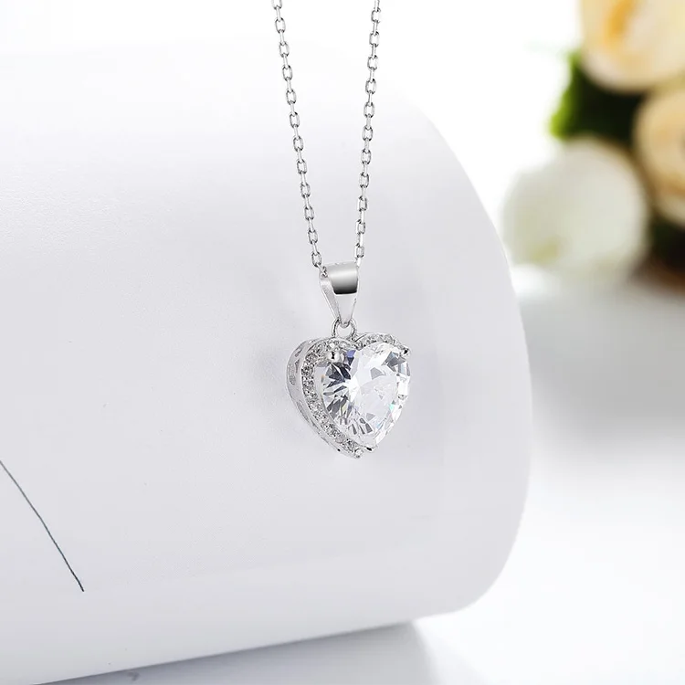 Christmas Gift 925 Sterling Silver Rhodium Plated Pendants Beautiful Large Love Heart Rhinestone Pendant