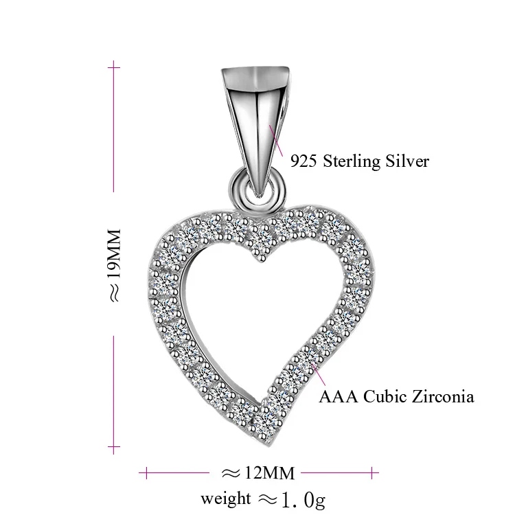 POLIVA Wholesale Fashion Zircon Rhodium Plating Necklace Pendant Jewelry Heart Pendants Charms 925 Sterling Silver Women Gift 1g