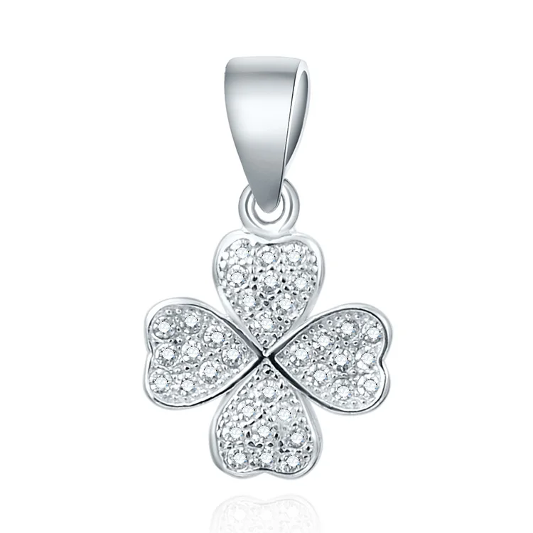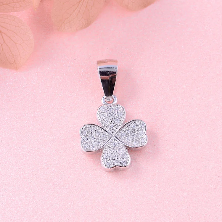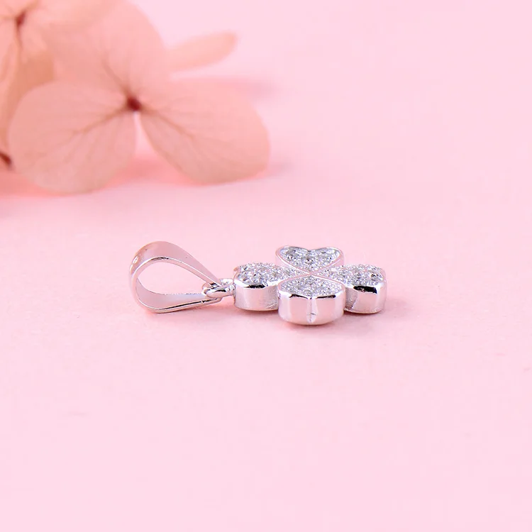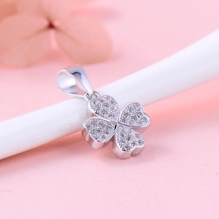Beautiful 925 Sterling Silver Pendants 3A Cubic Zirconia Rhodium Plated Four Leaf Clover Love Heart Necklace Pendant