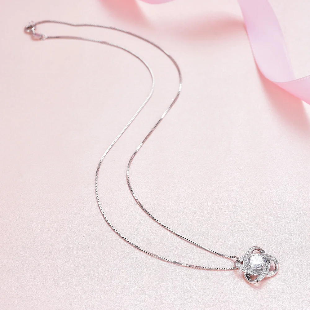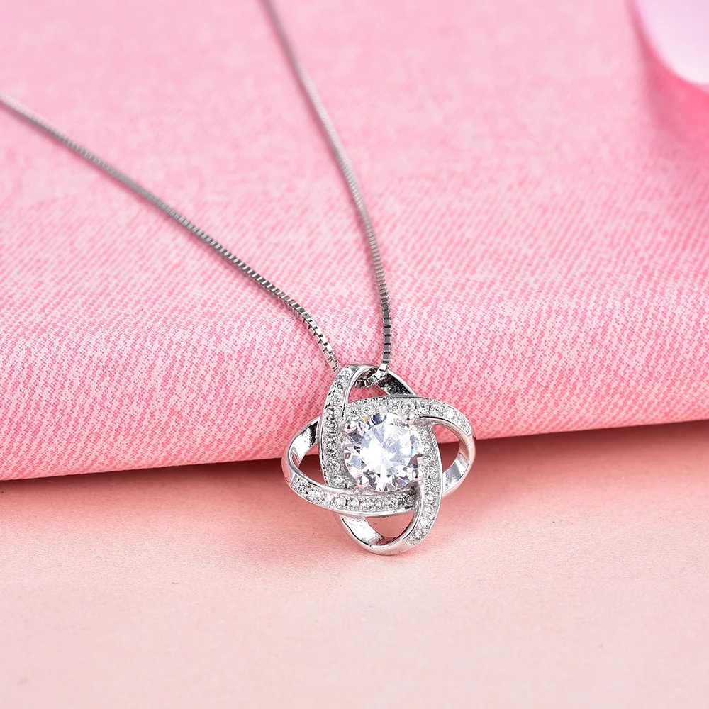 Sterling Silver Knot Necklace Pendant Endless Flower Necklace Pendant with AAA Cubic Zirconia Anniversary Jewelry Gift for Women