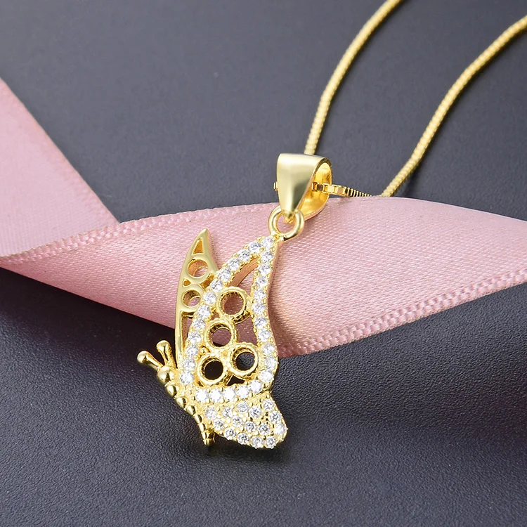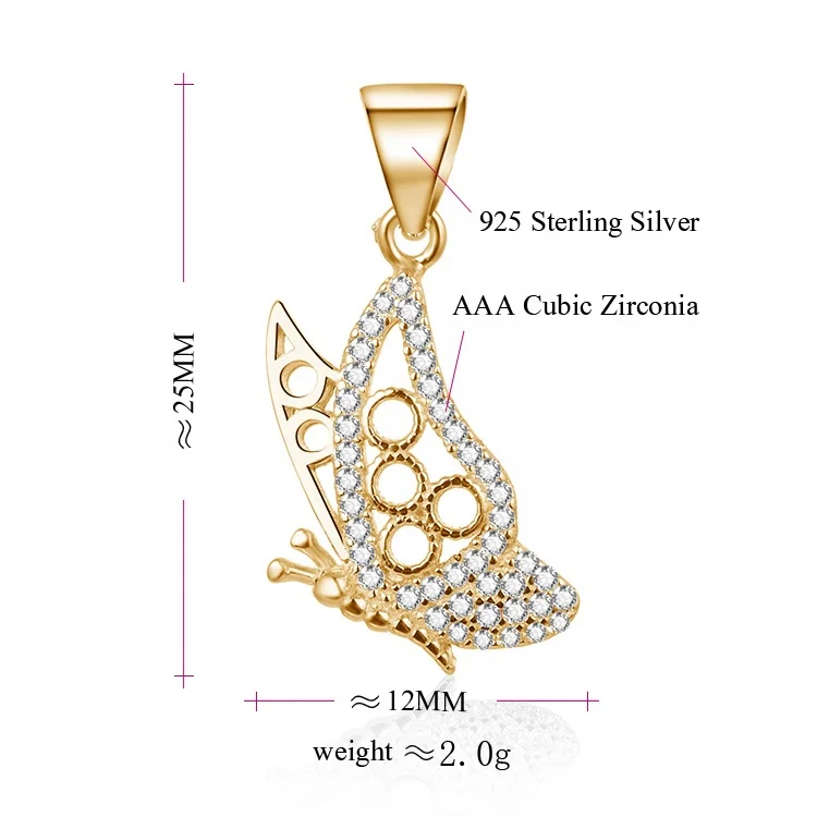 POLIVA Butterfly Pendant Charms Necklace Pendant Gold Plated 925 Sterling Silver Cubic Zirconia Women Trendy Party Zircon 2g