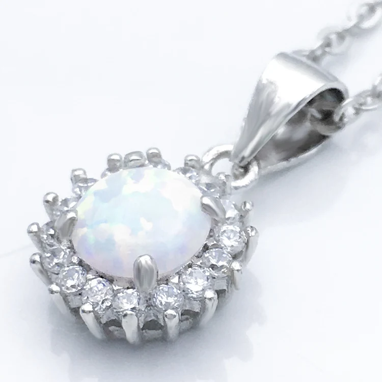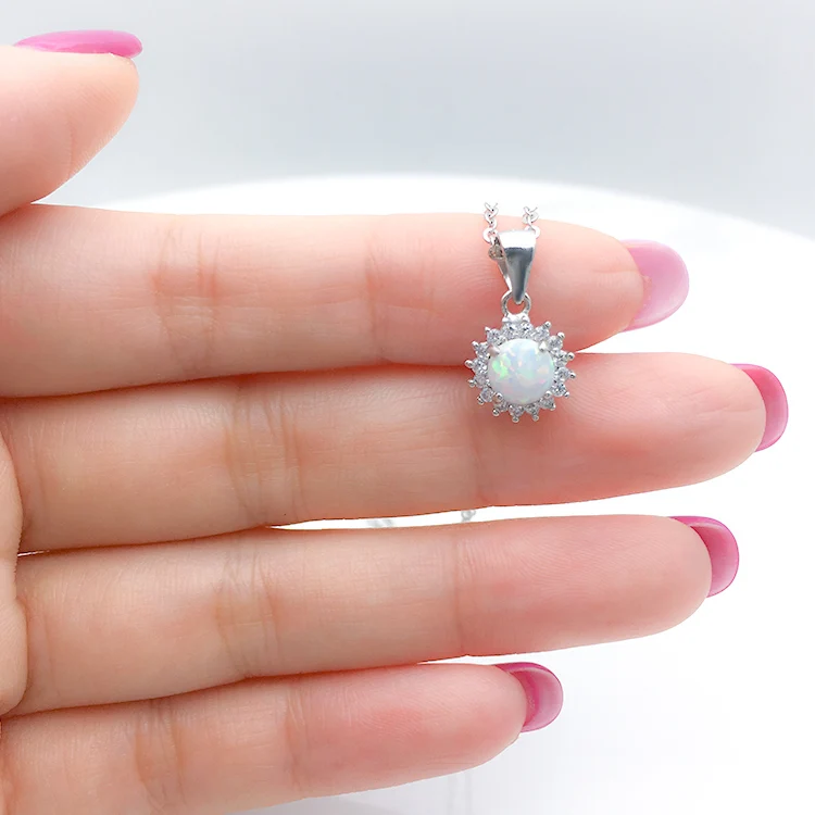 Popular Jewelry 925 Sterling Silver Pendants 3A Cubic Zirconia Hola Shape White Opal Jewelry Pendant
