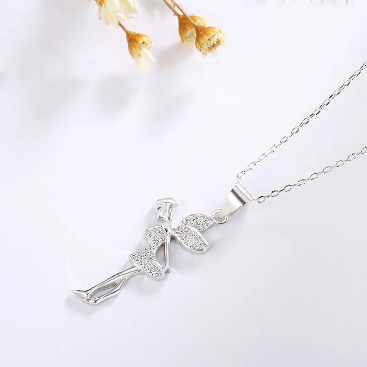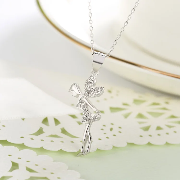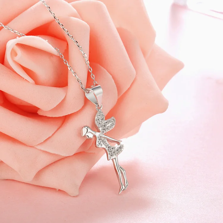 Poliva 925 Sterling Silver Women's White Gold Plated Angel Pendant Beautiful Fancy 3A Cubic Zirconia for Gift
