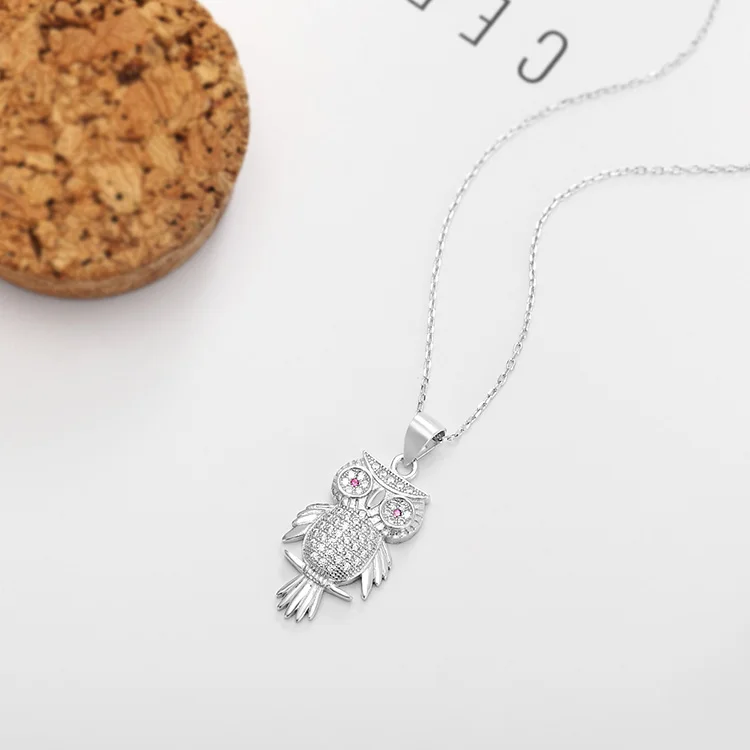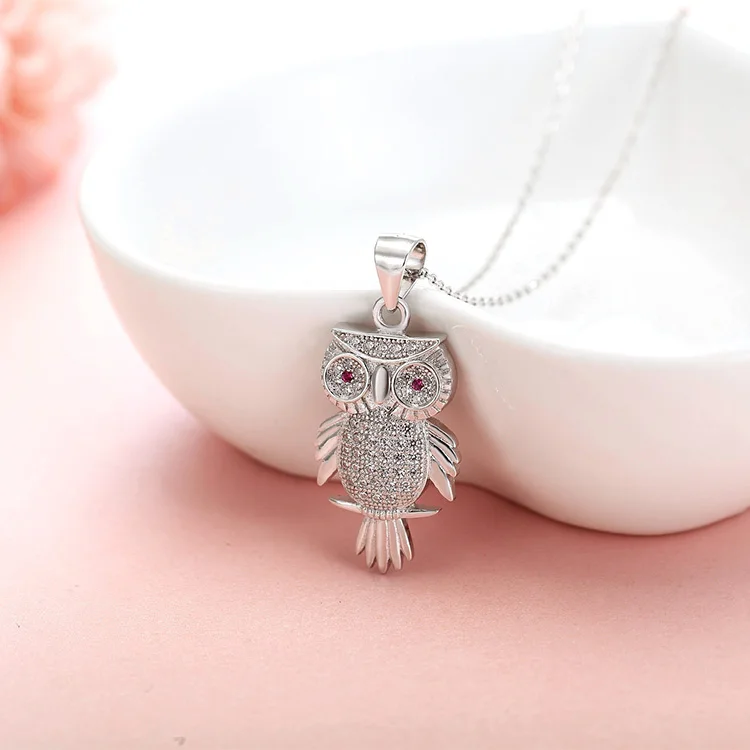 POLIVA Wholesale Jewelry 3A Cubic Zirconia Charm Pendants Rhodium Plated Beautiful Owl Fashion 925 Sterling Silver Gift Pendant