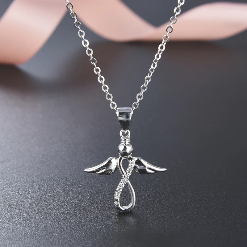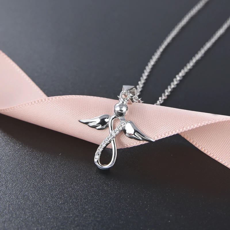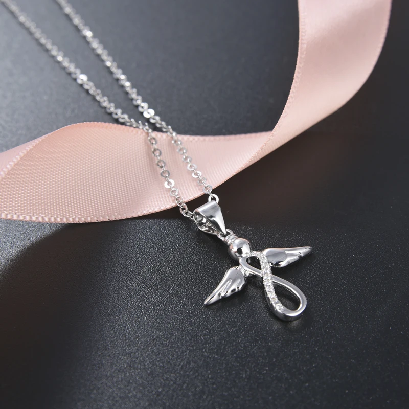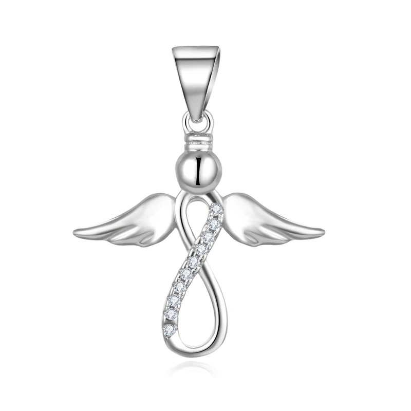 925 Sterling Silver Nurse Women Jewelry Pendant Guardian Angel Wings with Rhodium Gold Plating Featuring Zircon as Main Stone