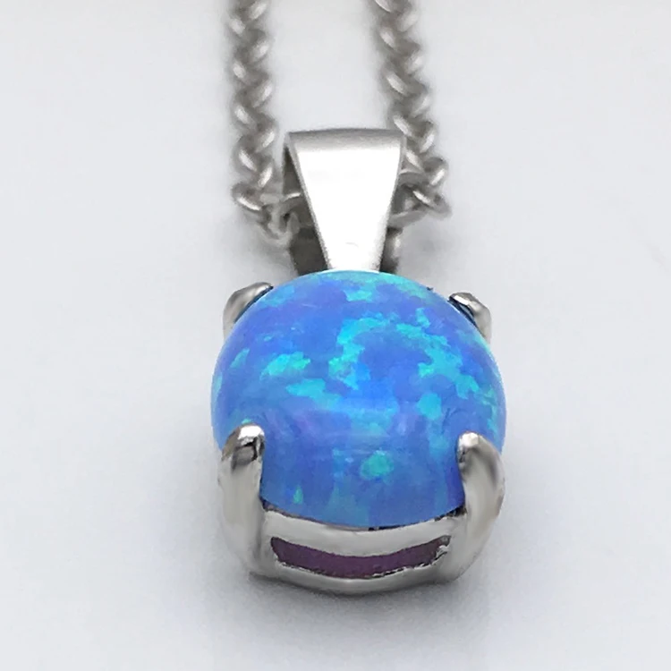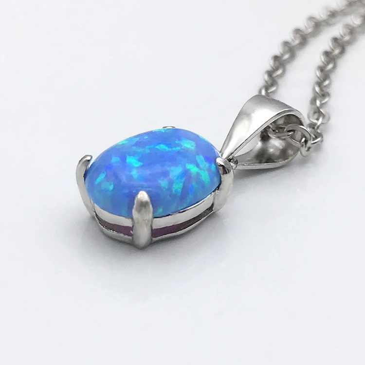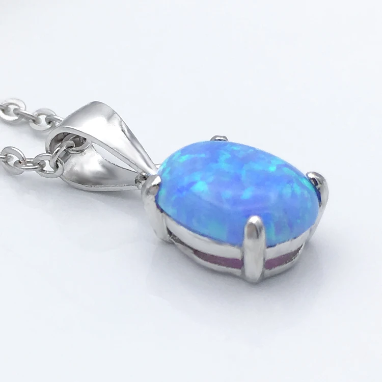 Elegant 925 Sterling Silver Jewelry Pendants Fashion Oval Shape Blue Gemstone Opal Pendant for Women