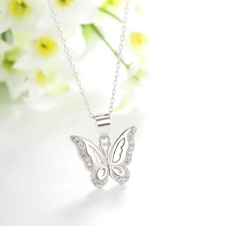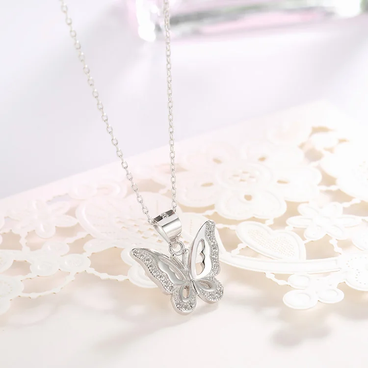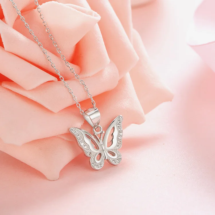Women Beautiful Jewelry 925 Sterling Silver Pendants 3A Cubic Zirconia Butterfly Pendant Chain Necklace