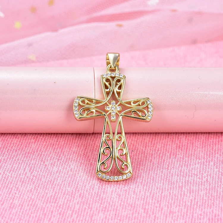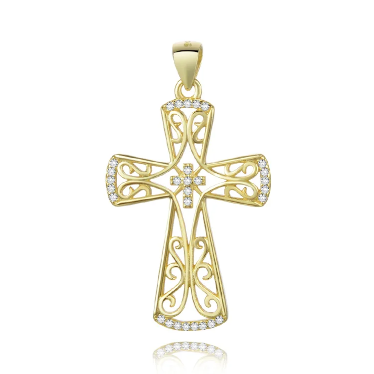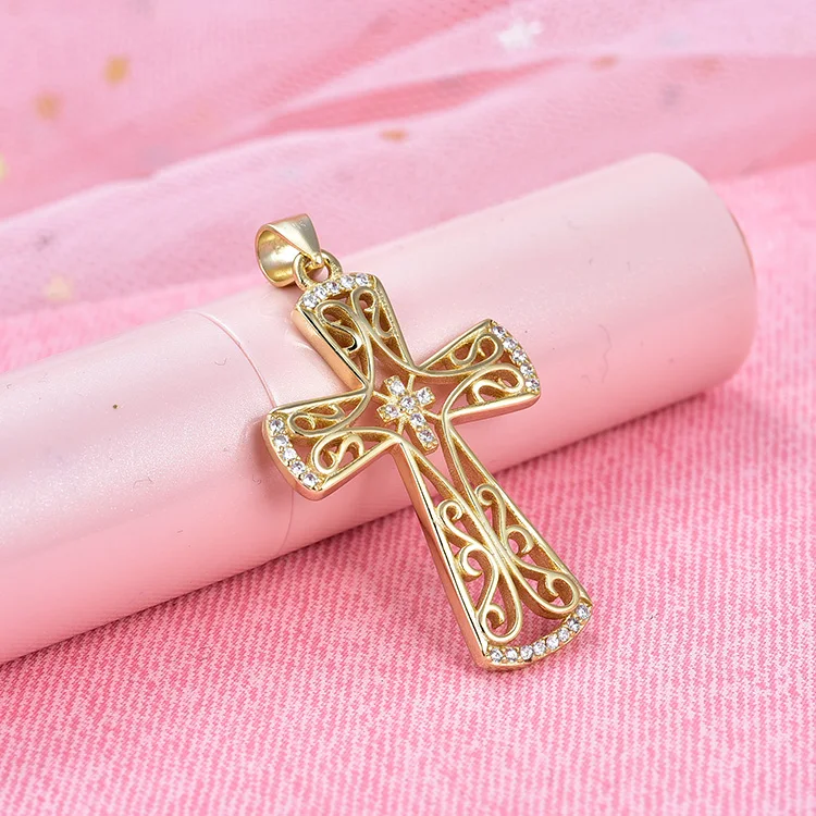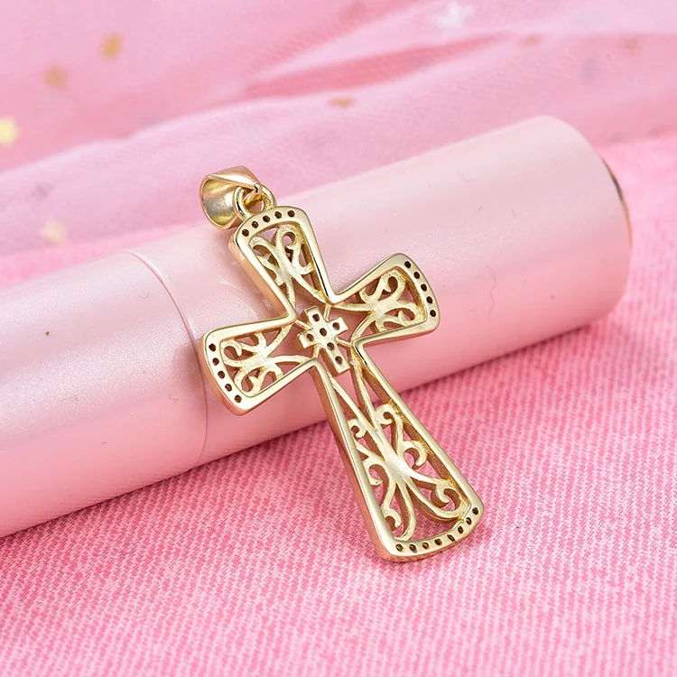 POLIVA Classic 925 Sterling Silver Jewelry Pendants K Gold Plating Vintage Cross Hollow Pendant