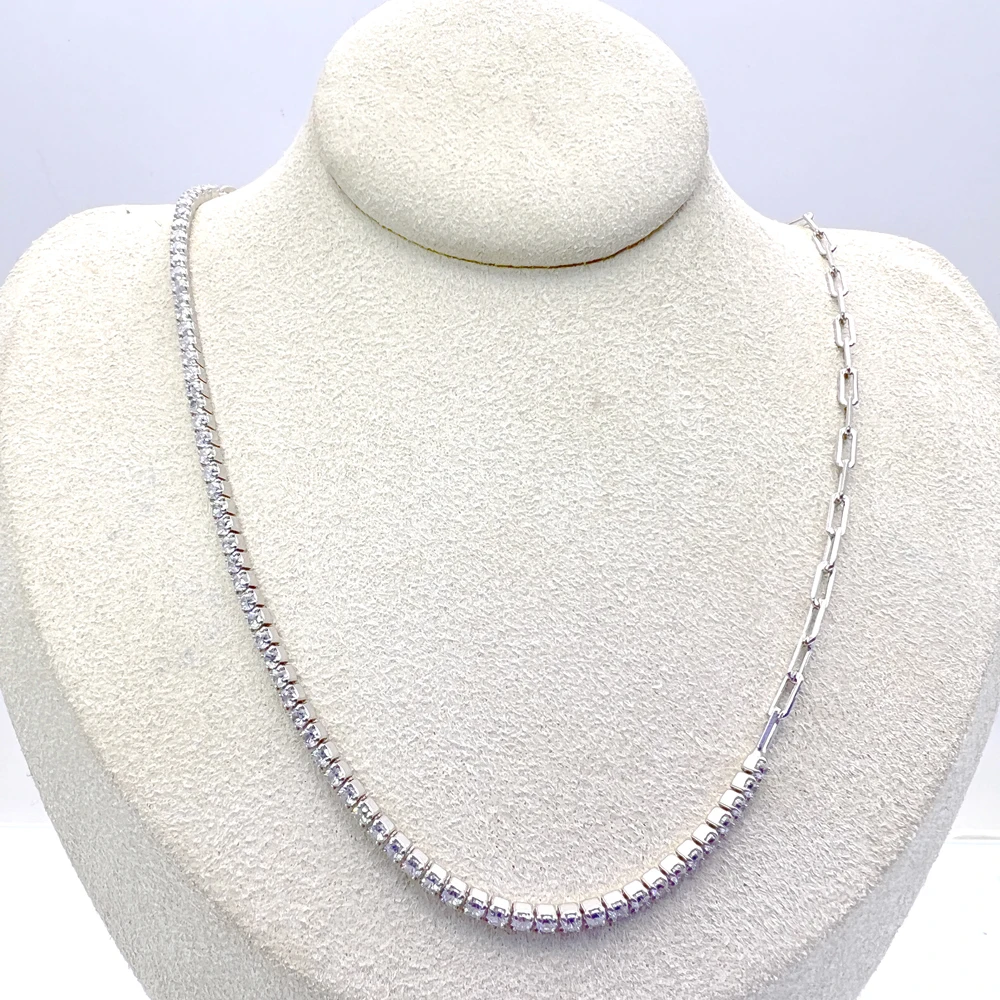 925 Sterling Silver Diamond Zircon Gem Choker Necklace Adjustable Tennis Necklace with Gold Plating Rose Gold Material Wedding