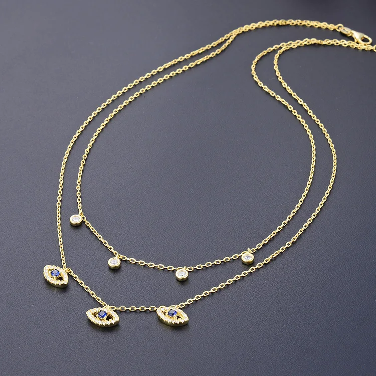 POLIVA Women's 925 Silver Sterling Evil Eye Choker Necklace 18K Gold Plated with Rhinestone Fashion Link Chain Jewelry