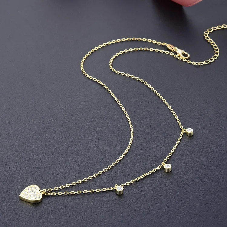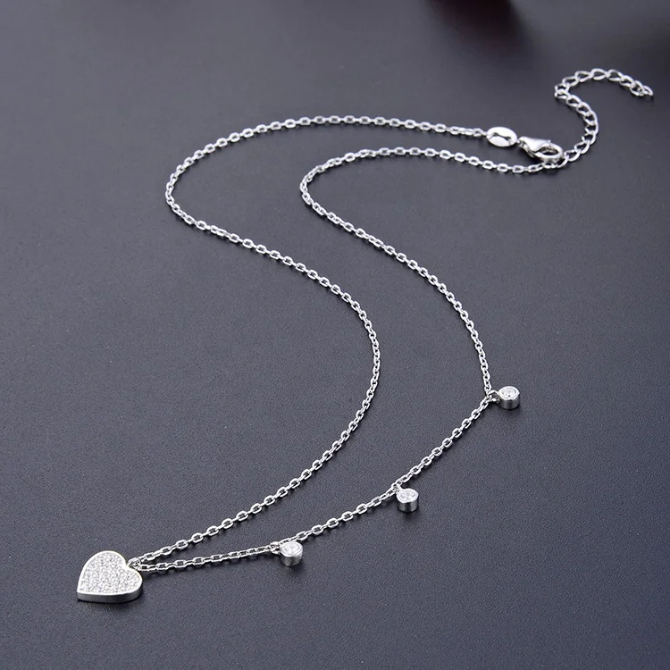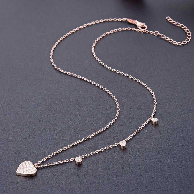 POLIVA Rose Gold 925 Sterling Silver Plated Necklace for Women CZ Zircon Heart Pendant with 40+5cmm Micro Insert Link Chain Gift
