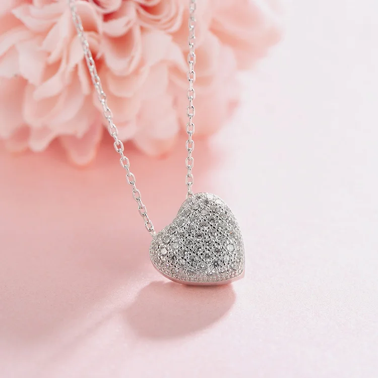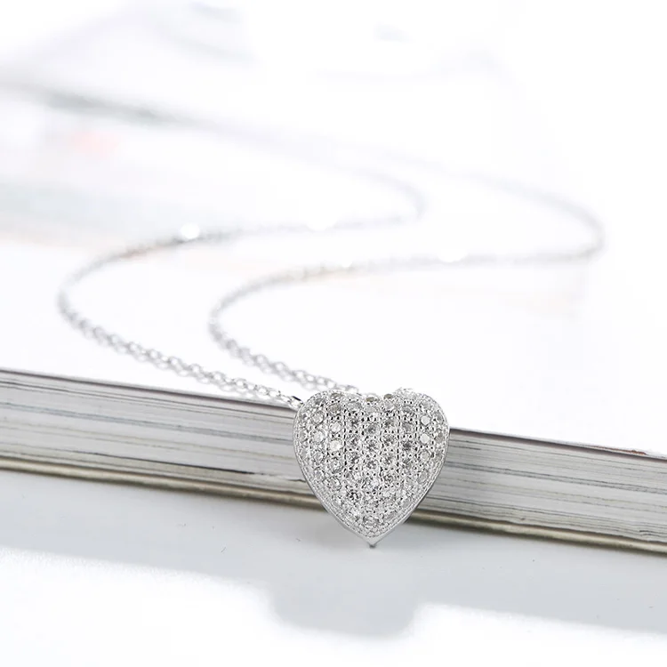 Exquisite S925 Sterling Silver Love Heart Pendant Necklace with Gold Link Chain Wedding Zircon Charm for Women Gift