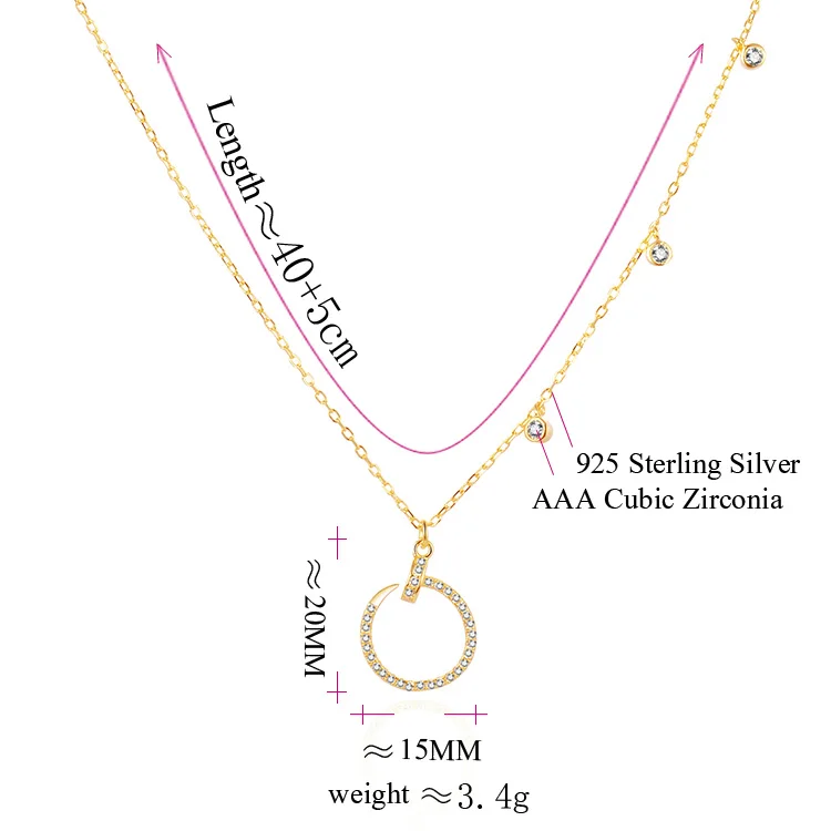 POLIVA Karat Jewelry Moissanite Necklace Circle Cz Stone Sterling 925 Silver Strand & String Necklaces Fashion Necklace
