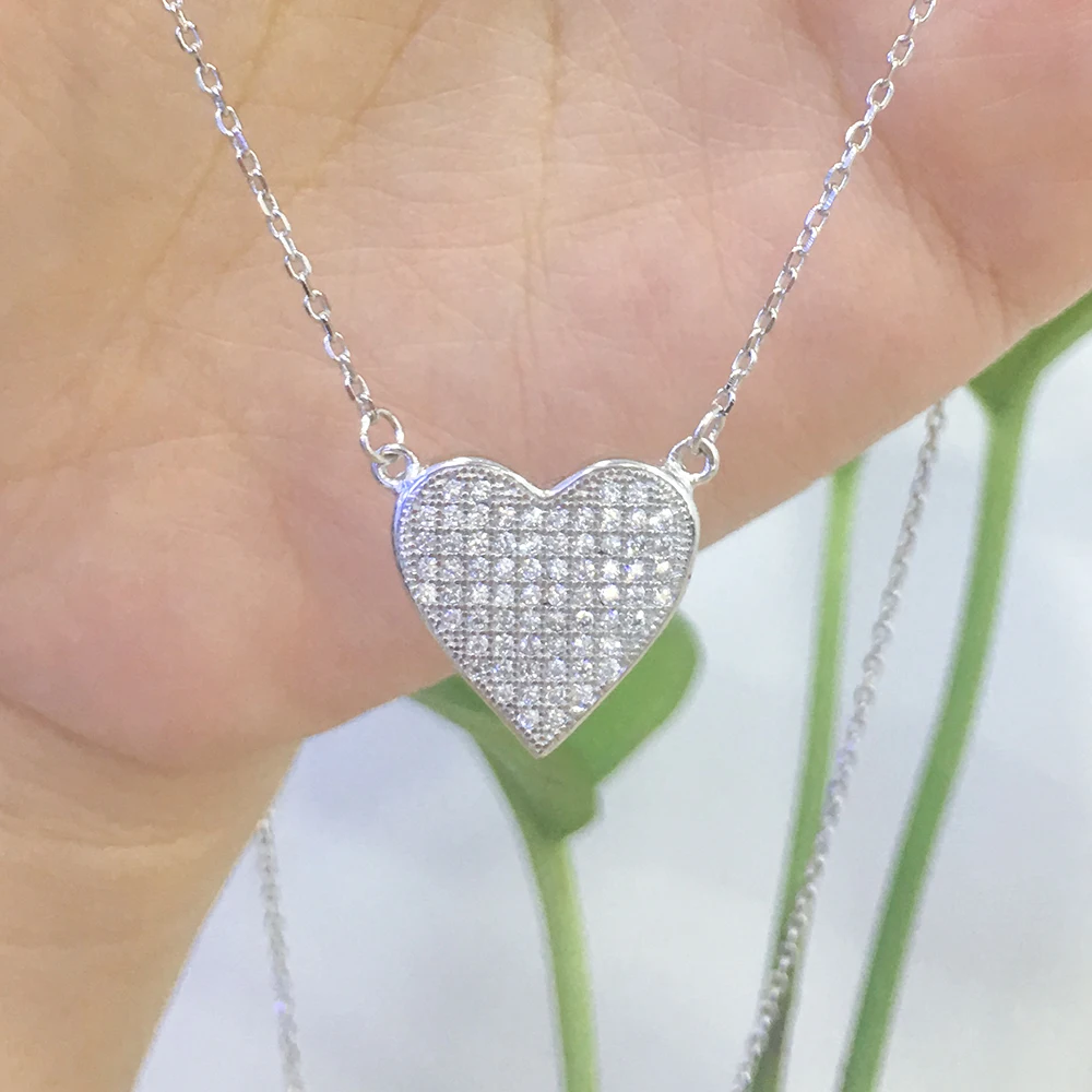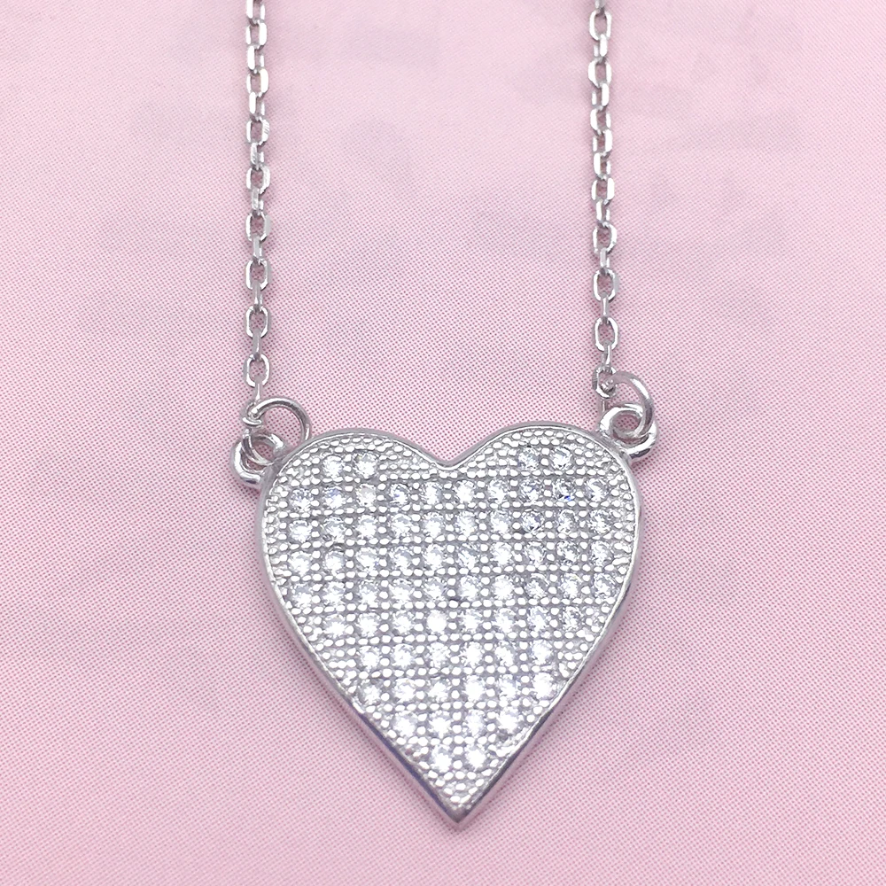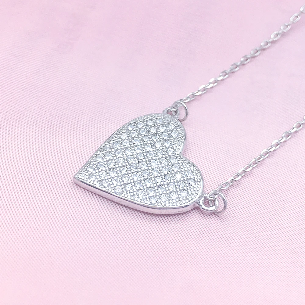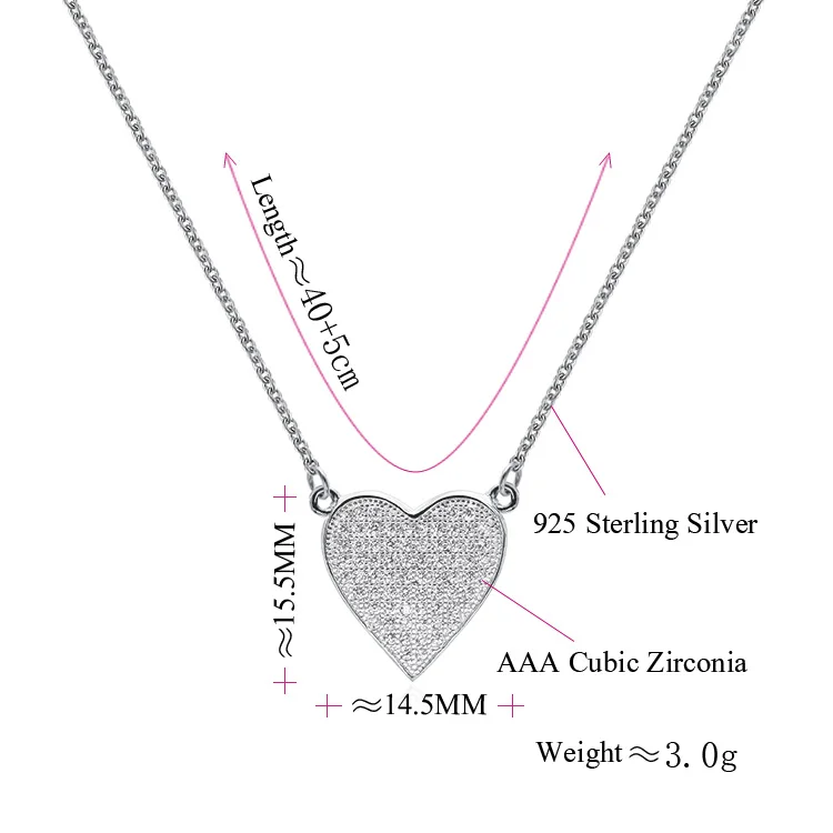 Daily Wear Fashion 925 Sterling Silver White Gold Necklaces Elegant Heart Shape Women Necklace Chain