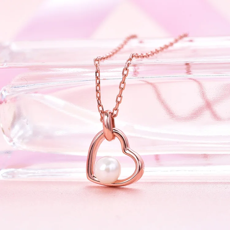 925 Sterling Silver Heart Jewelry Fashion Fresh Water Pearl Necklace Vintage Pearl Necklaces