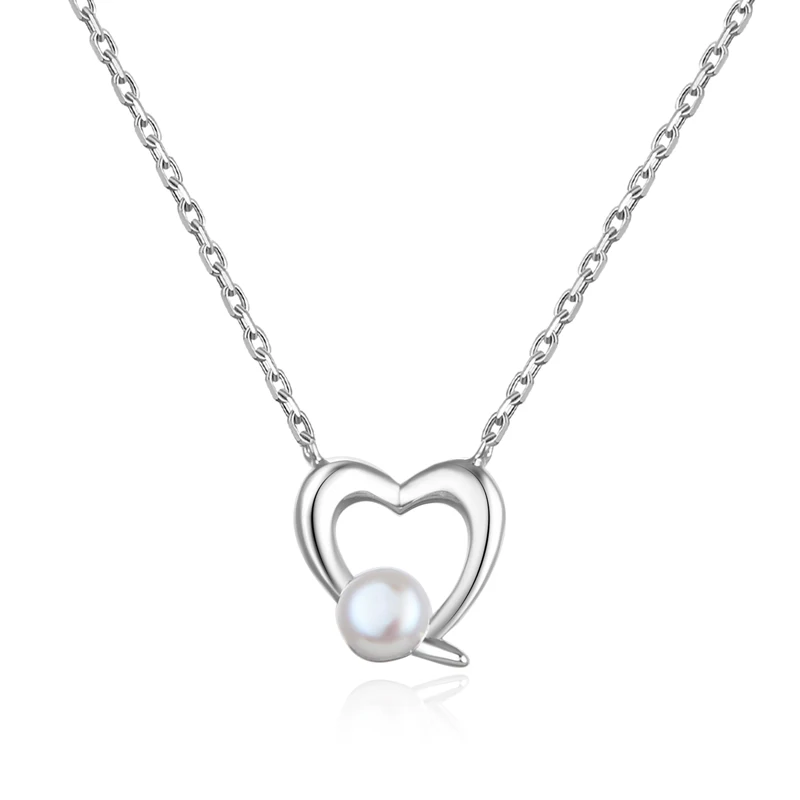 Forever Love Heart Pendant 925 Sterling Silver Christmas Jewelry Gift Pearl Necklaces