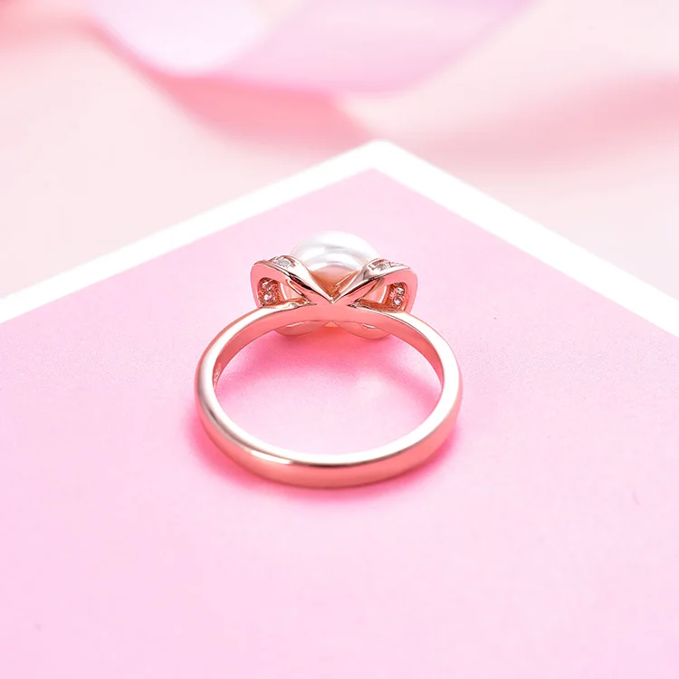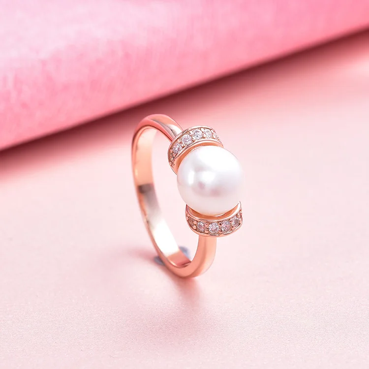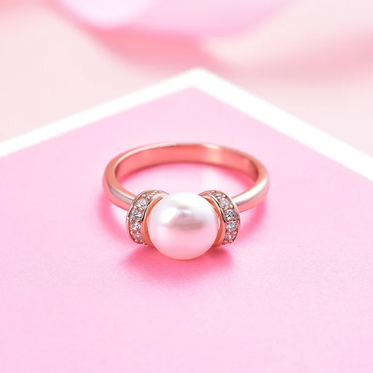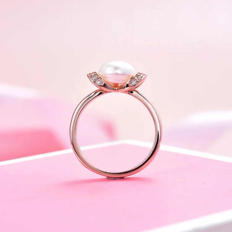 Womens Rose Gold Plated Sterling Silver Cultured Freshwater Pearl Rings