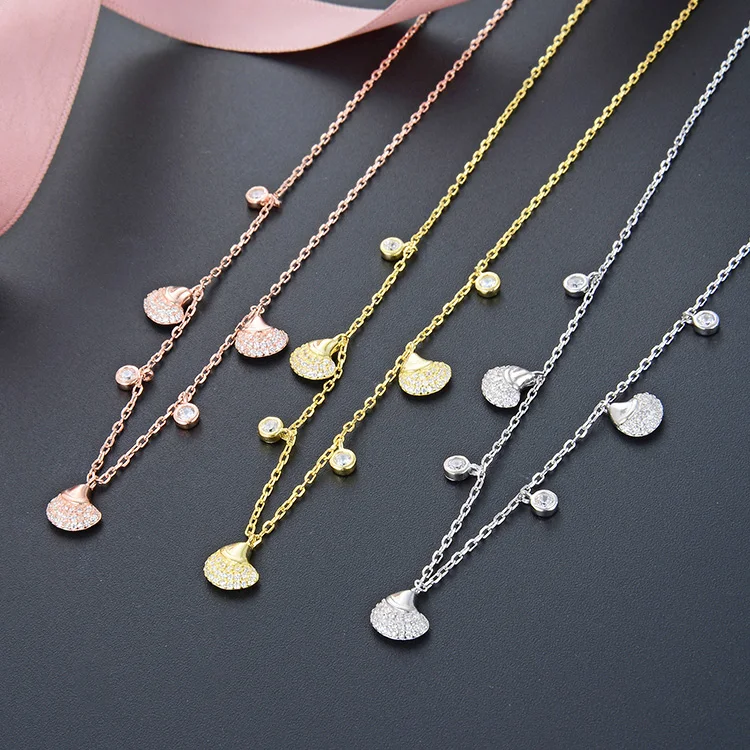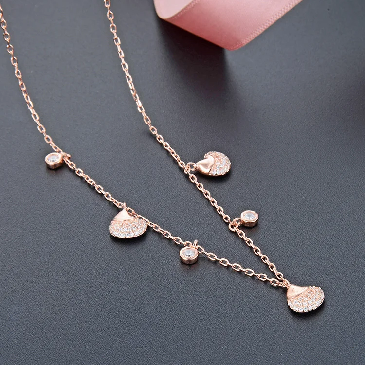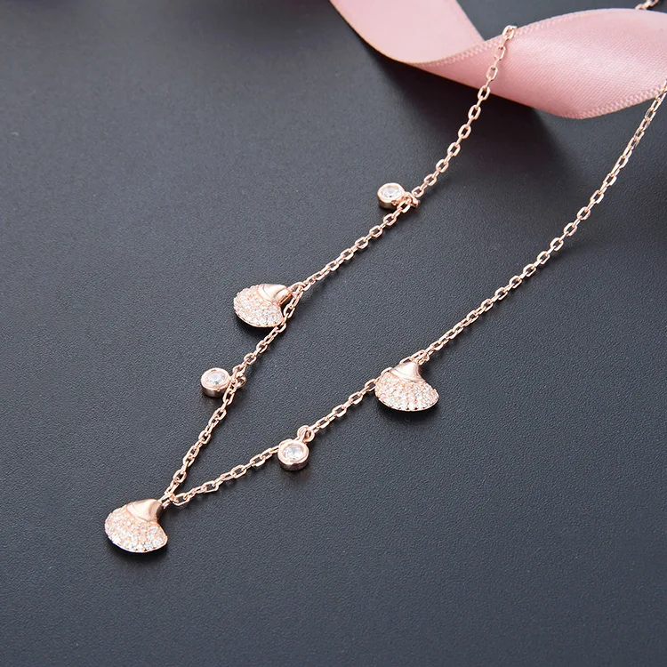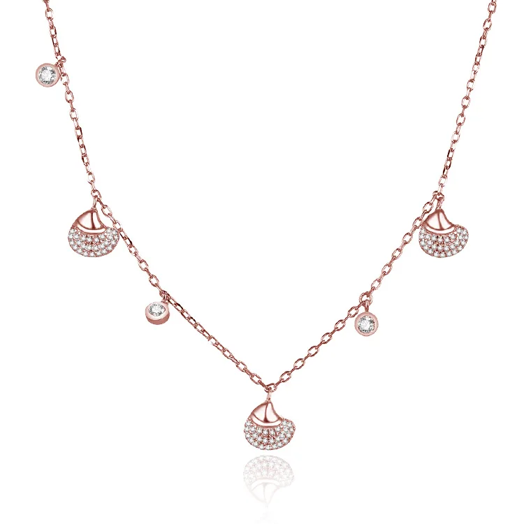 POLIVA Wholesale Rose Gold Plated 925 Sterling Silver Necklace Chain Shell Charms Bohemia Bohemia Crystal Bowl