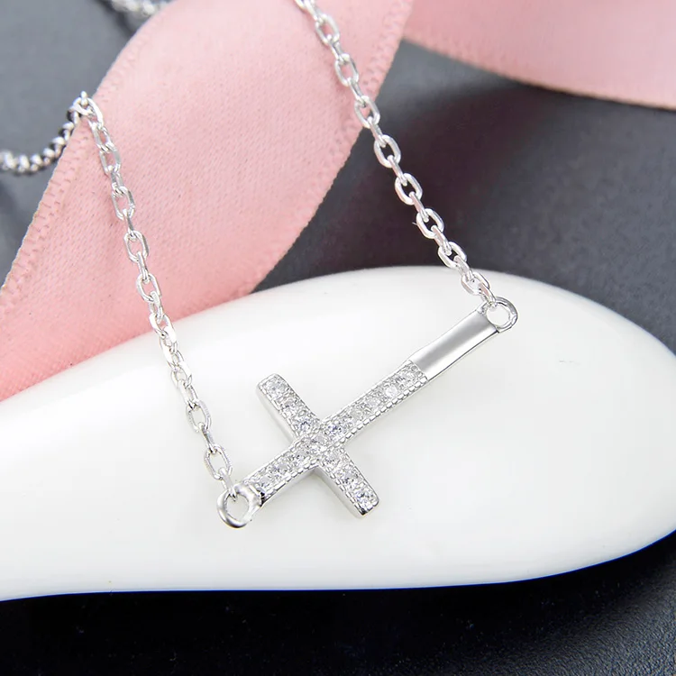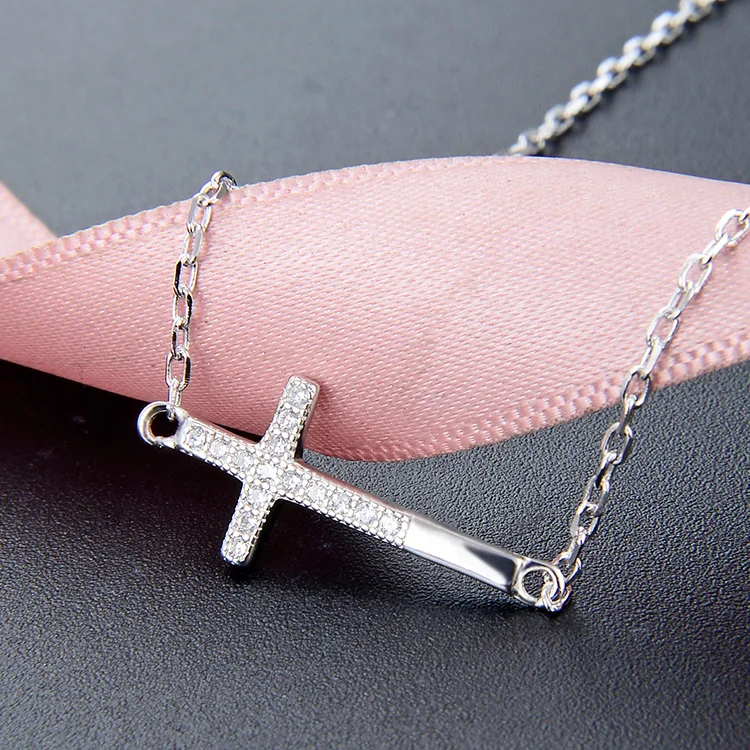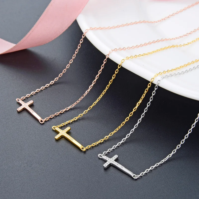 POLIVA Wholesale Joyas De Plata Minimalist Crystal Zirconia Jewelry Dainty 925 Sterling Silver Cross Necklace 18k Gold Necklace