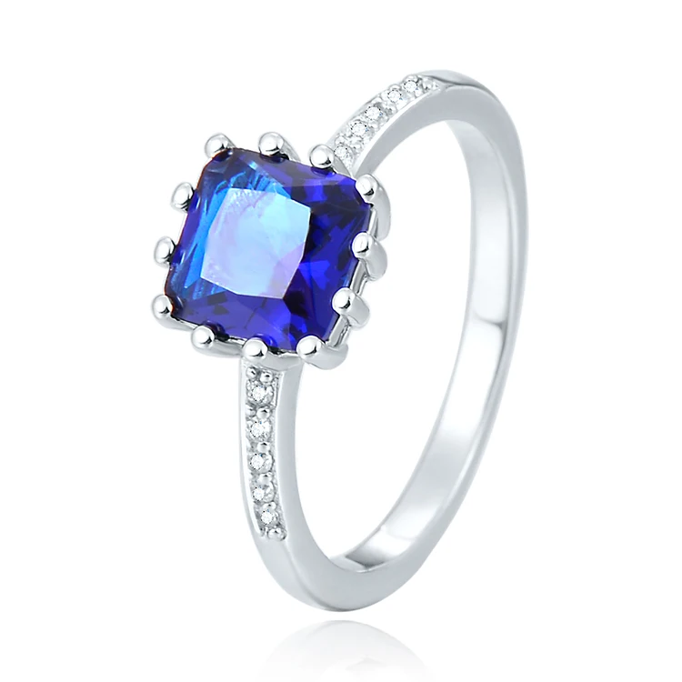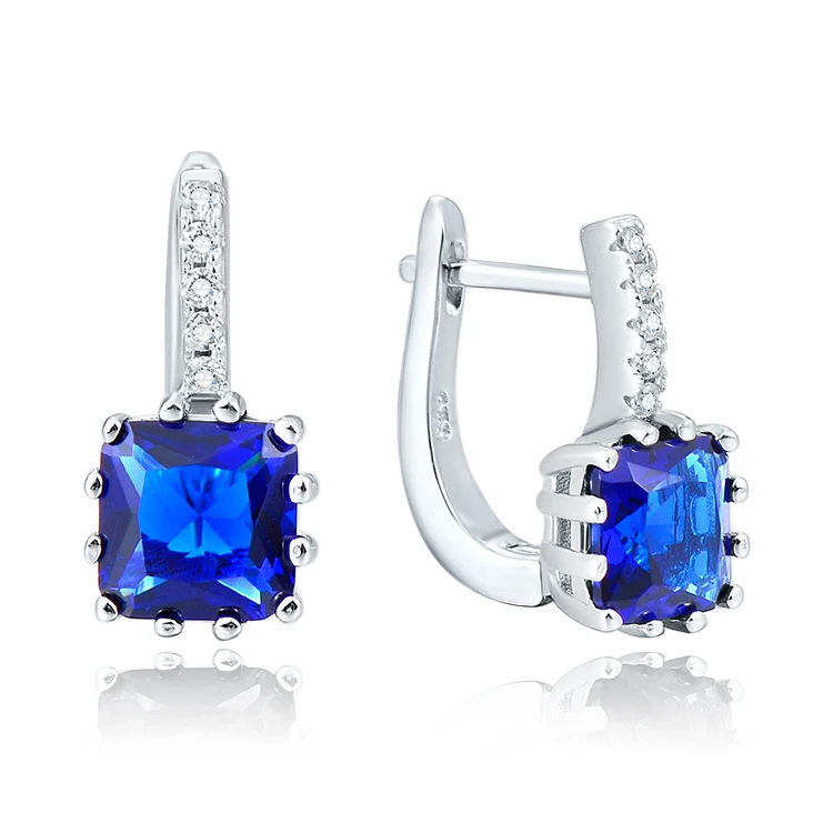 Elegant Beautiful 925 Sterling Silver Jewelry Sets Aaa Crystal Rhodium Plating Princess Cut Blue Sapphire Jewelry Set