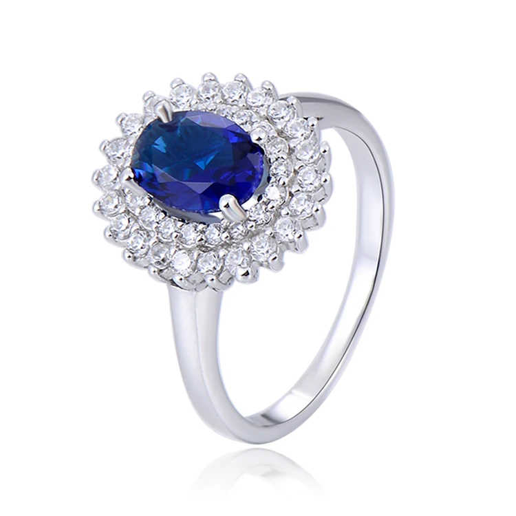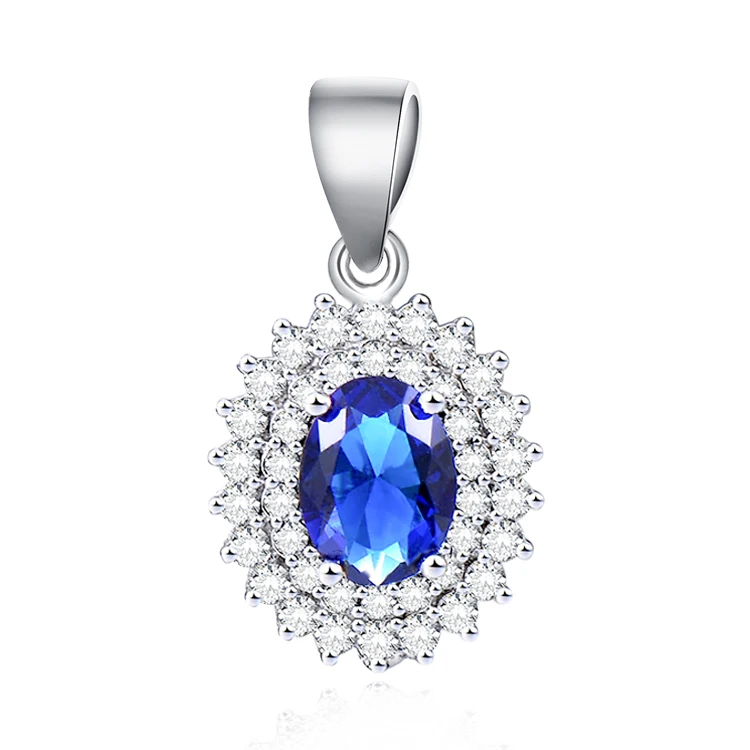 Fashion Shining 925 Sterling Silver Jewelry Sets Aaa Crystal Rhodium Plating Oval Blue Sapphire Lovely Girl Jewelry Set
