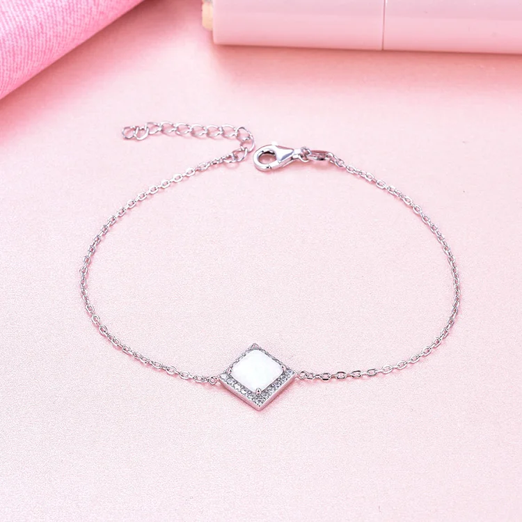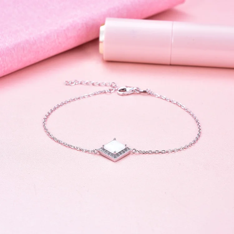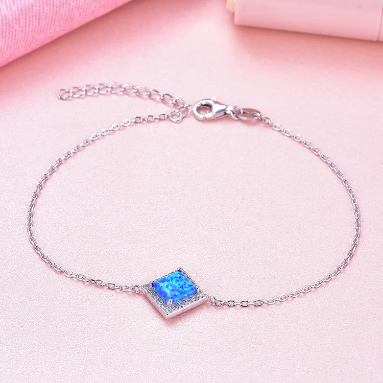 Adjustable Women's Square Opal Bracelet Custom 925 Silver Luxury Jewelry Rhodium Plating Trendy Party Engagement Gift Wholesale